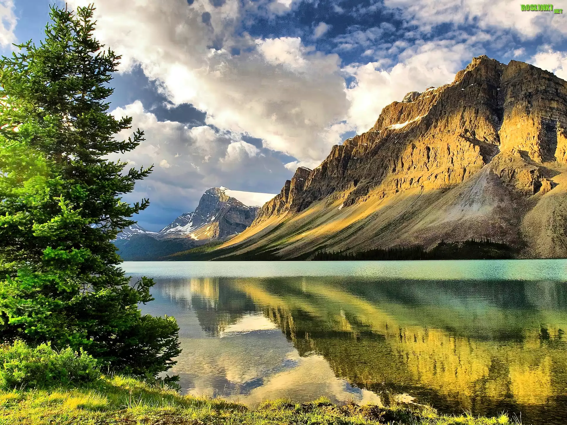 Rośliny: Góry, Chmury, Jezioro, Choinka