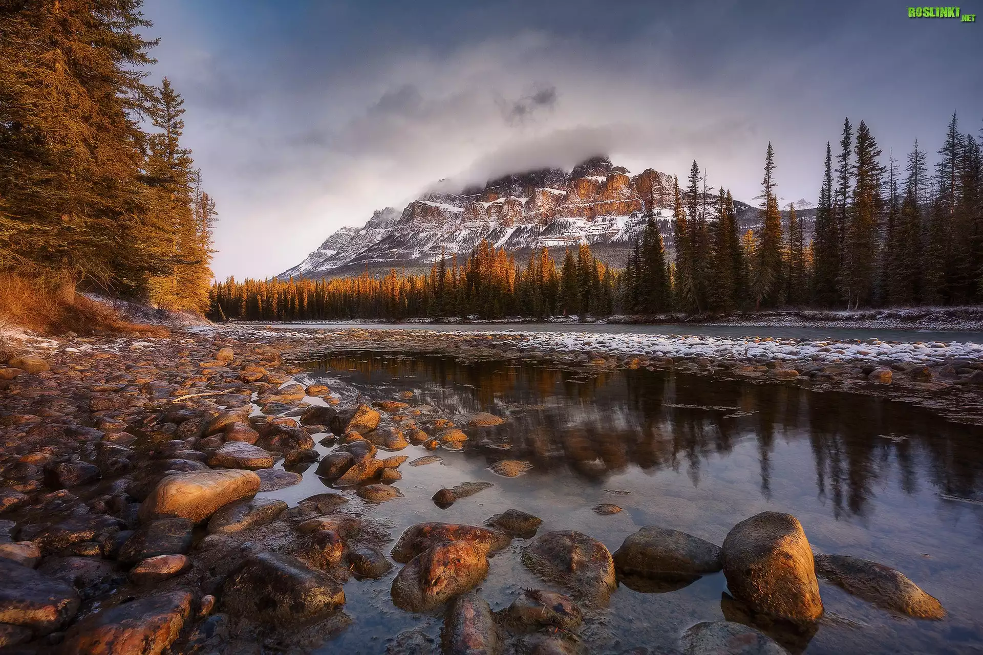 Rośliny: Góry, Las, Drzewa, Jezioro, Kamienie