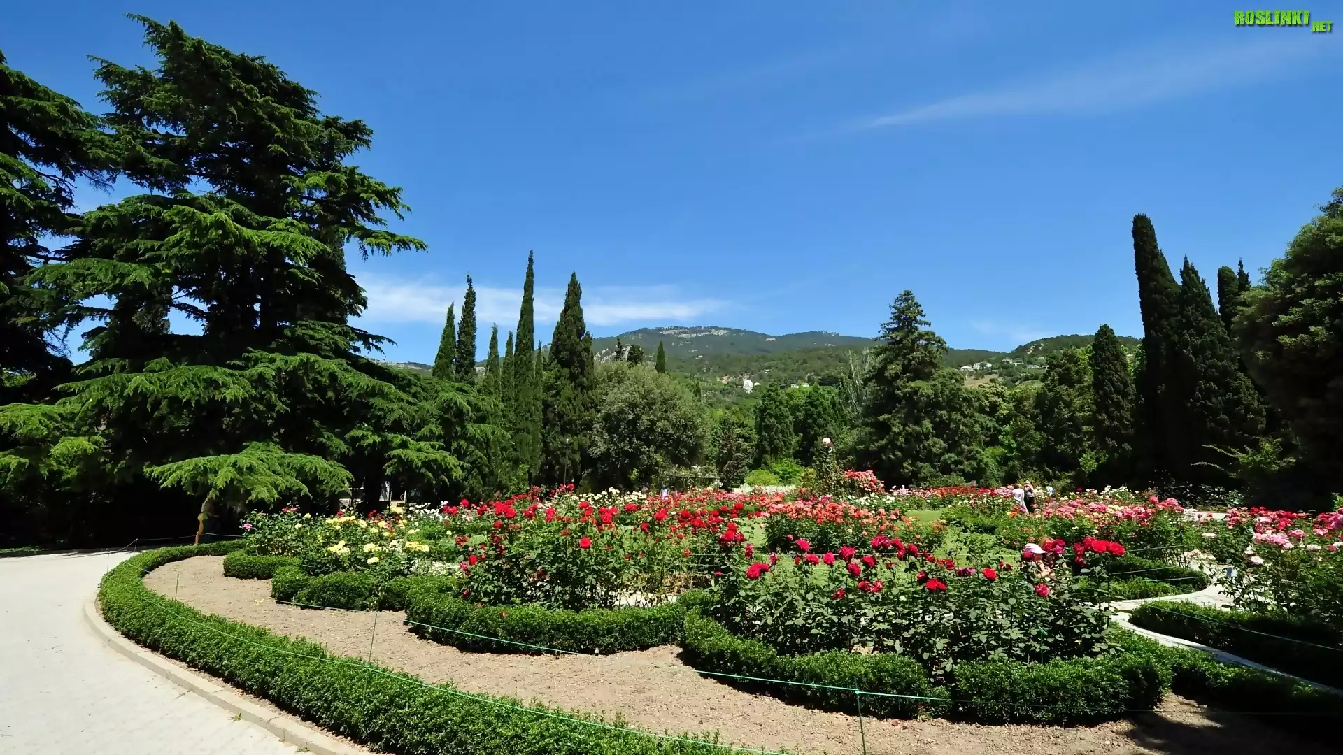 Rośliny: Góry, Park, Iglaki, Klomb, Różany