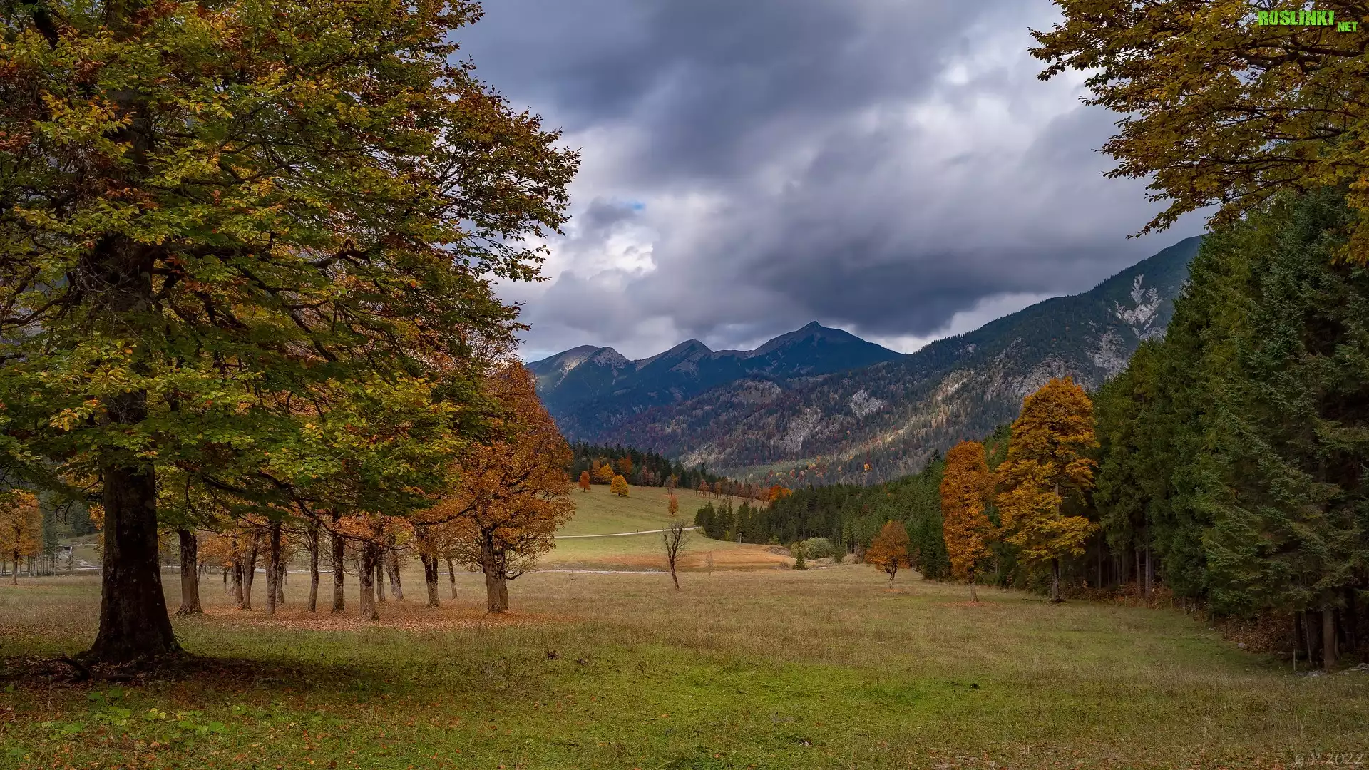 Rośliny: Jesień, Góry, Kolorowe, Drzewa, Polana