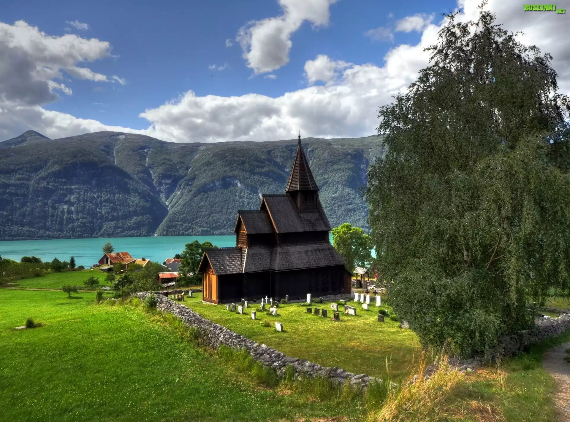 Rośliny: Góry, Chmury, Drewniany, Kościół, Drzewo