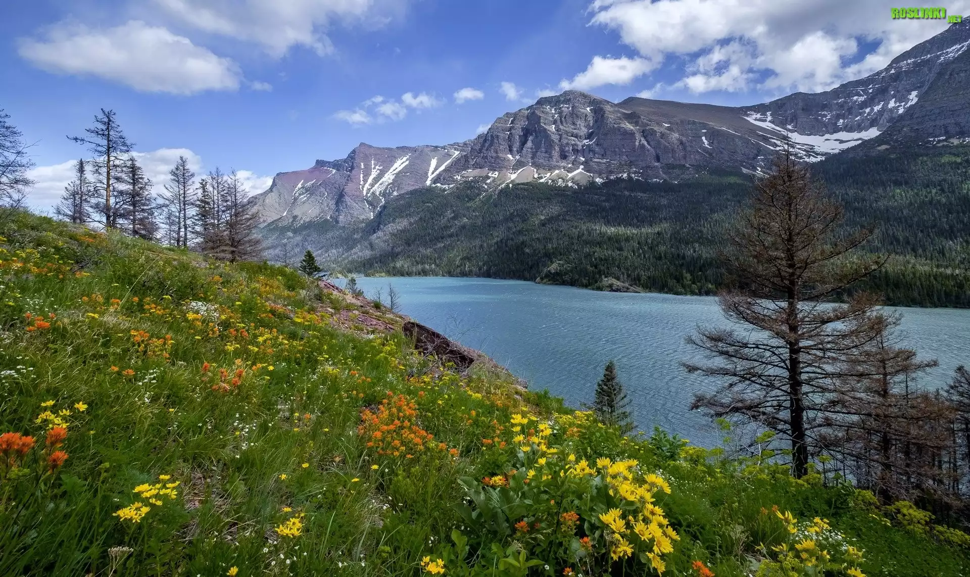 Rośliny: Góry, Rzeka, Kwiaty, Drzewa