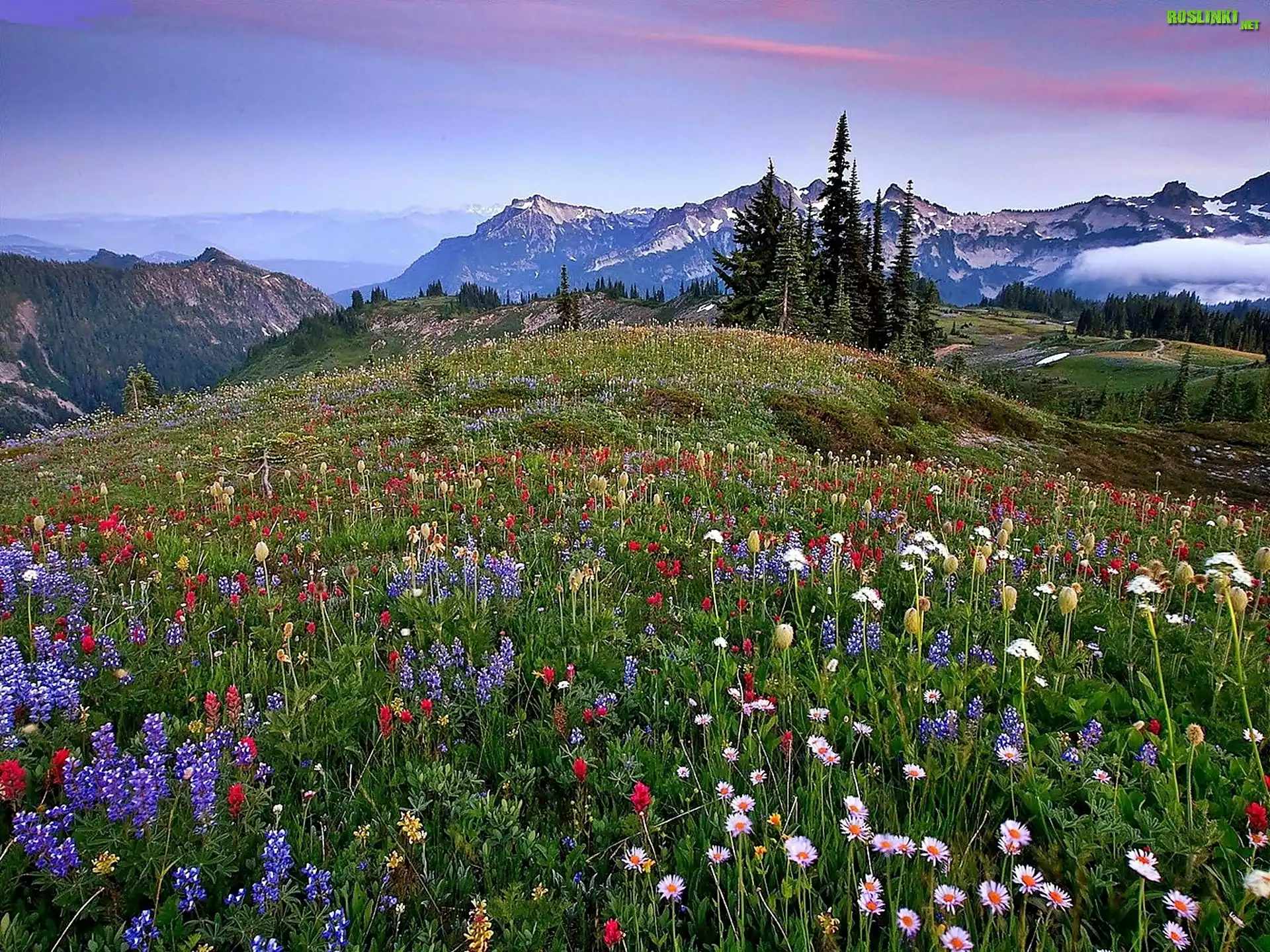 Rośliny: Góry, Mgła, Świerki, Kwietna, Łąka