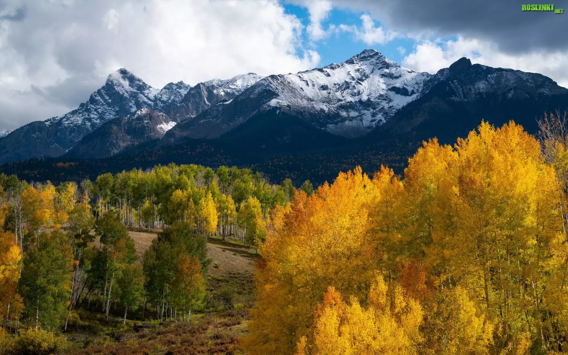 Rośliny: Jesień, Góry, Las, Drzewa, Chmury