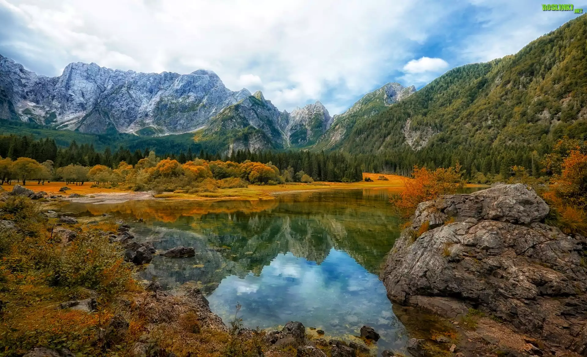 Rośliny: Góry, Jezioro, Drzewa, Las, Skały