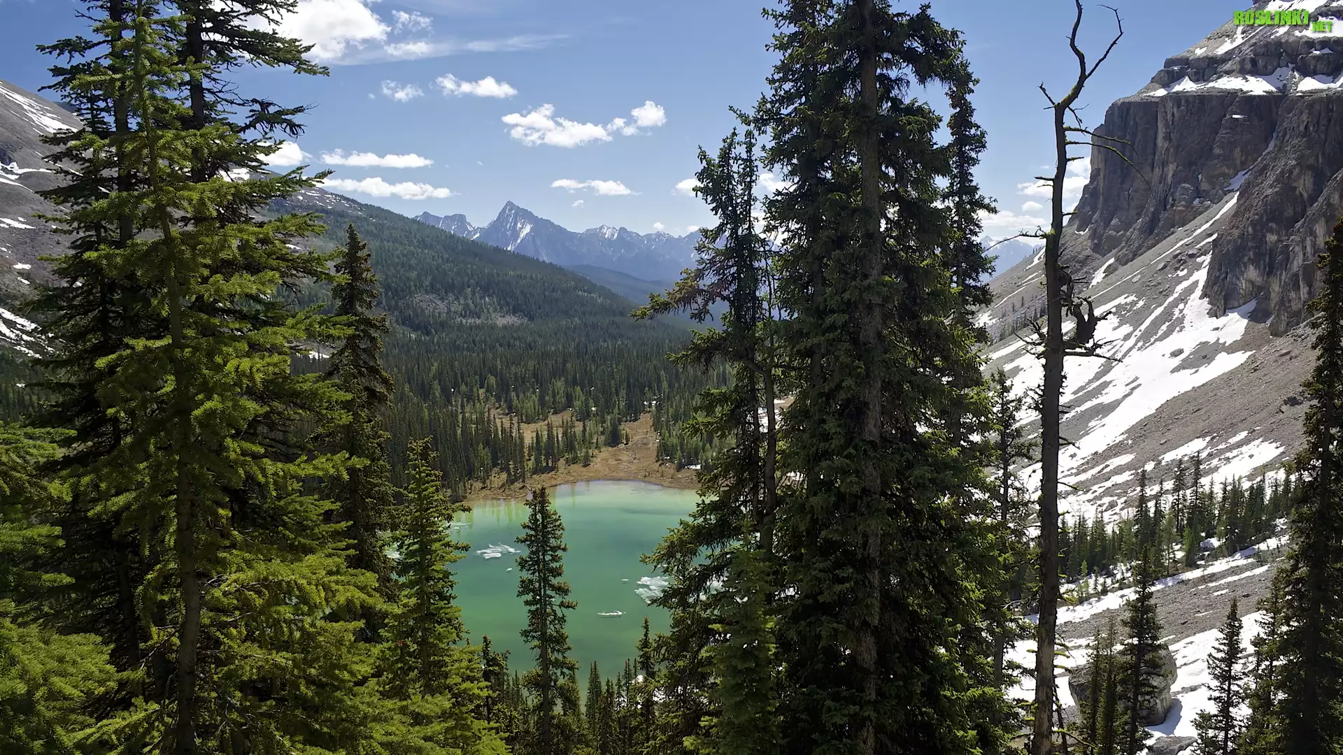 Rośliny: Góry, Jezioro, Drzewa, Lasy, Chmury