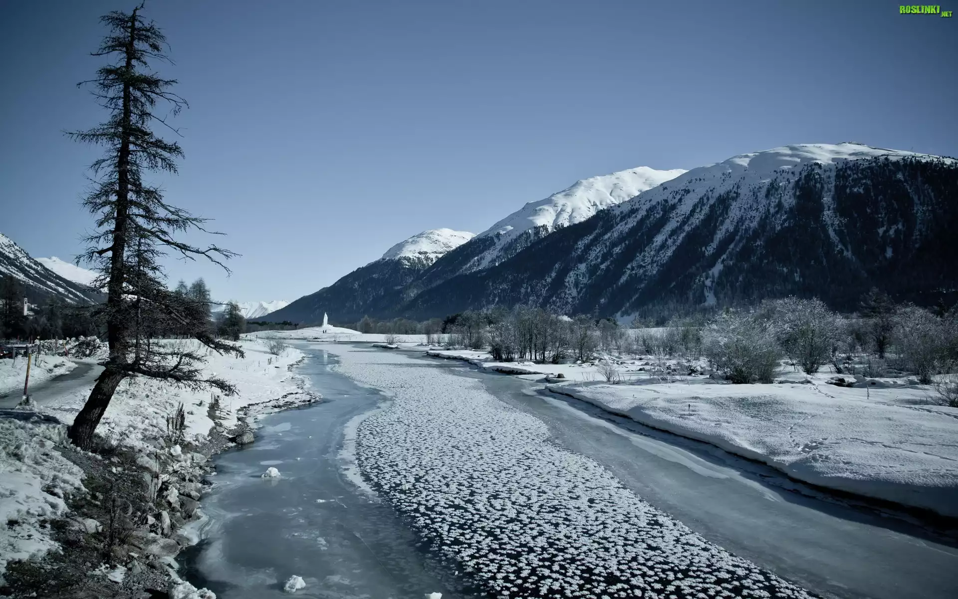 Rośliny: Góry, Rzeka, Śnieg, Lód, Drzewa