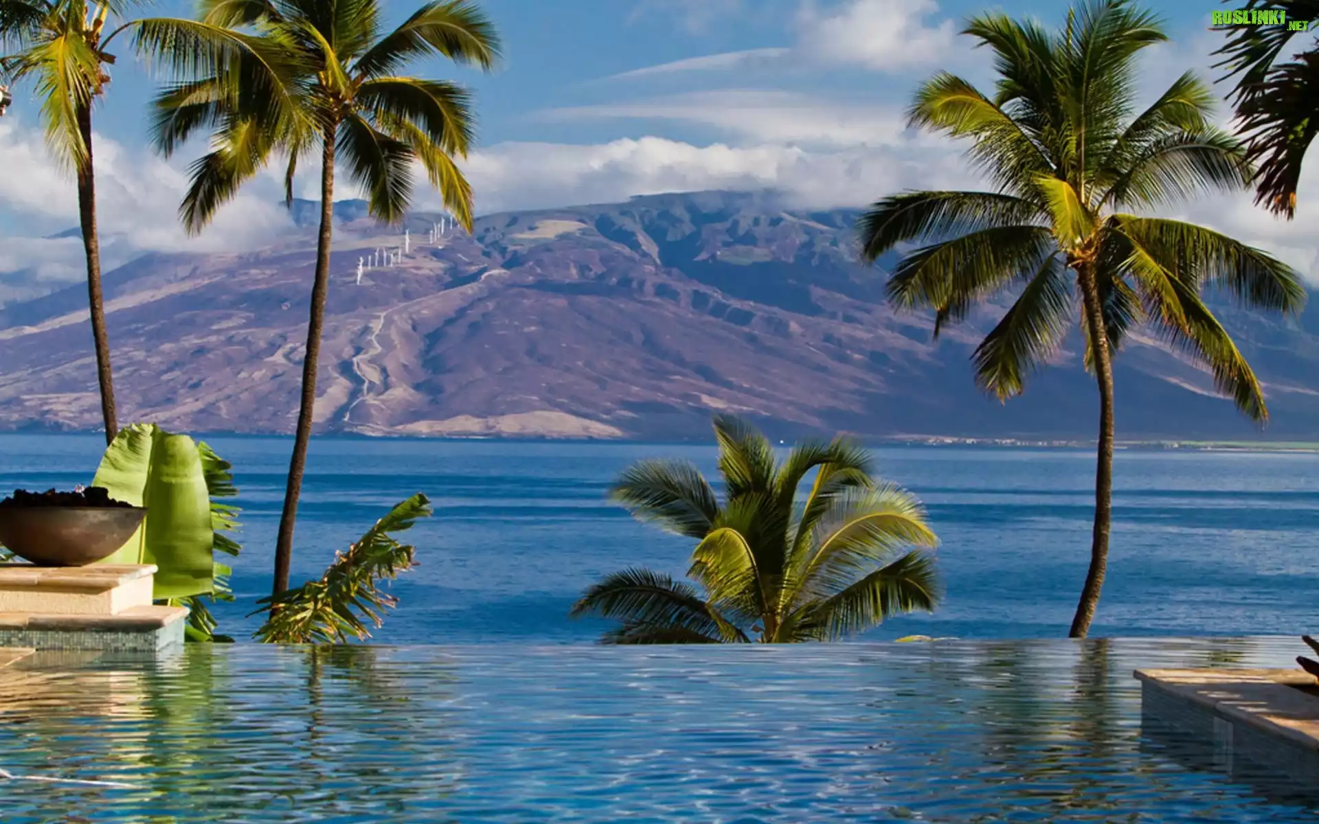 Góry, Morze, Basen, Palmy, Maui, Hawaje
