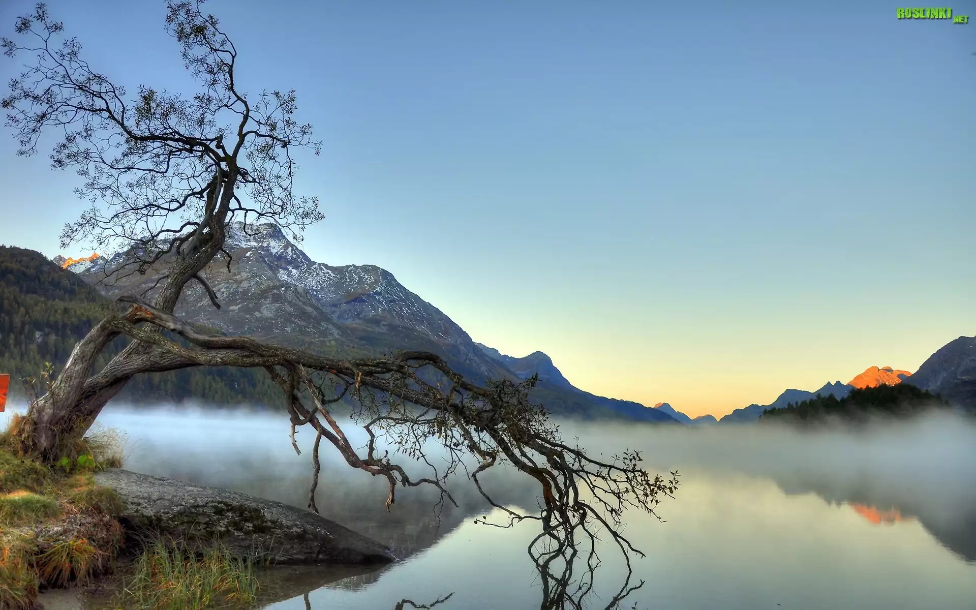 Rośliny: Góry, Jezioro, Mgła, Drzewo