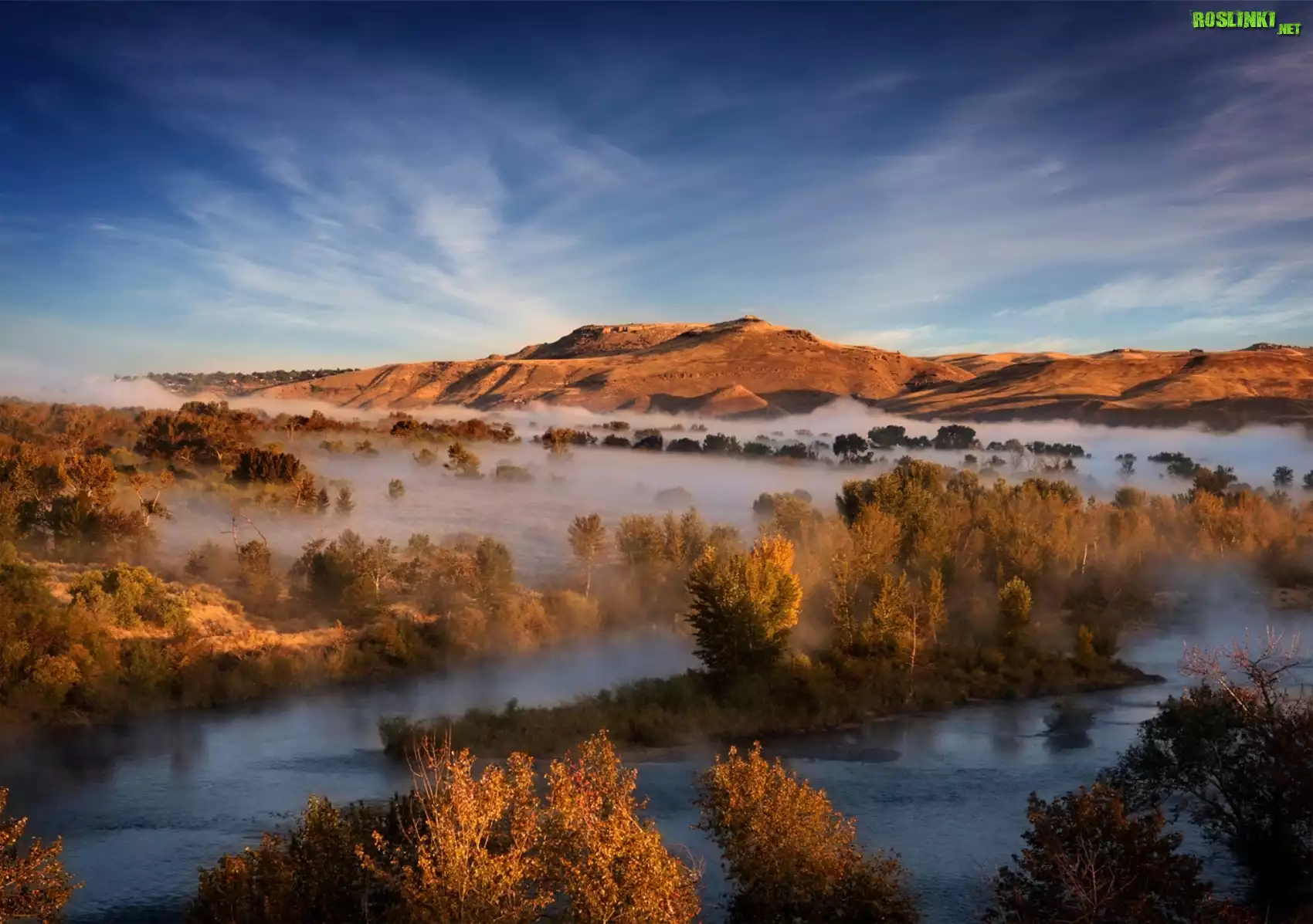 Rośliny: Góry, Rzeka, Mgła, Drzewa