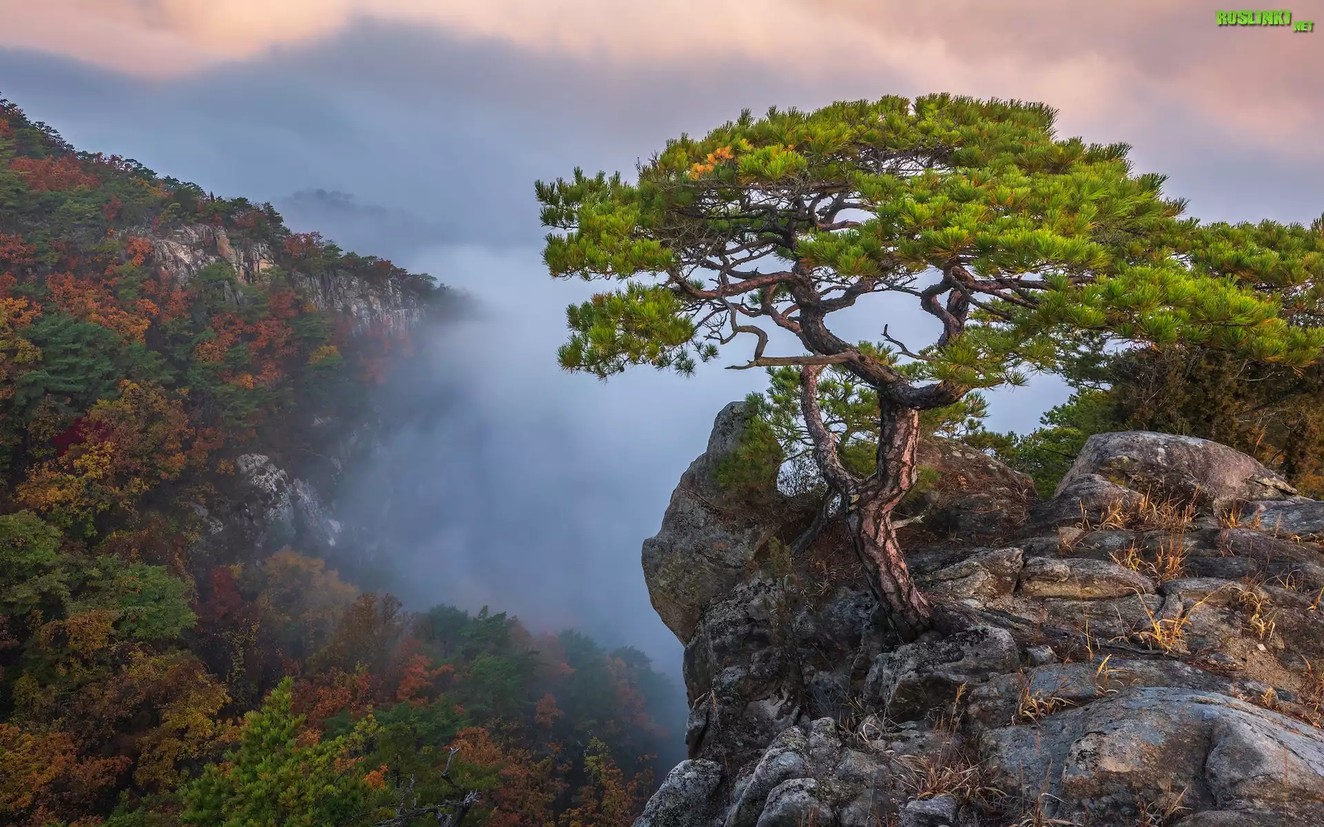 Rośliny: Góry, Skały, Sosna, Mgła, Chmury