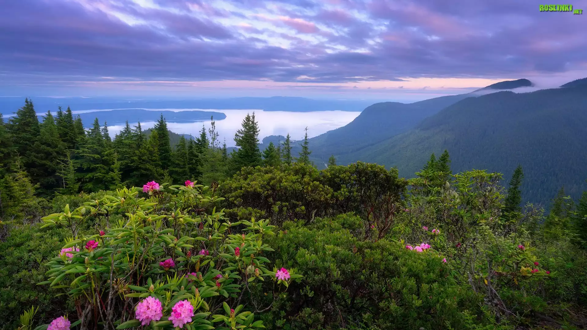 Rośliny: Morze, Góry, Lasy, Drzewa, Kwiaty, Różanecznik, Chmury