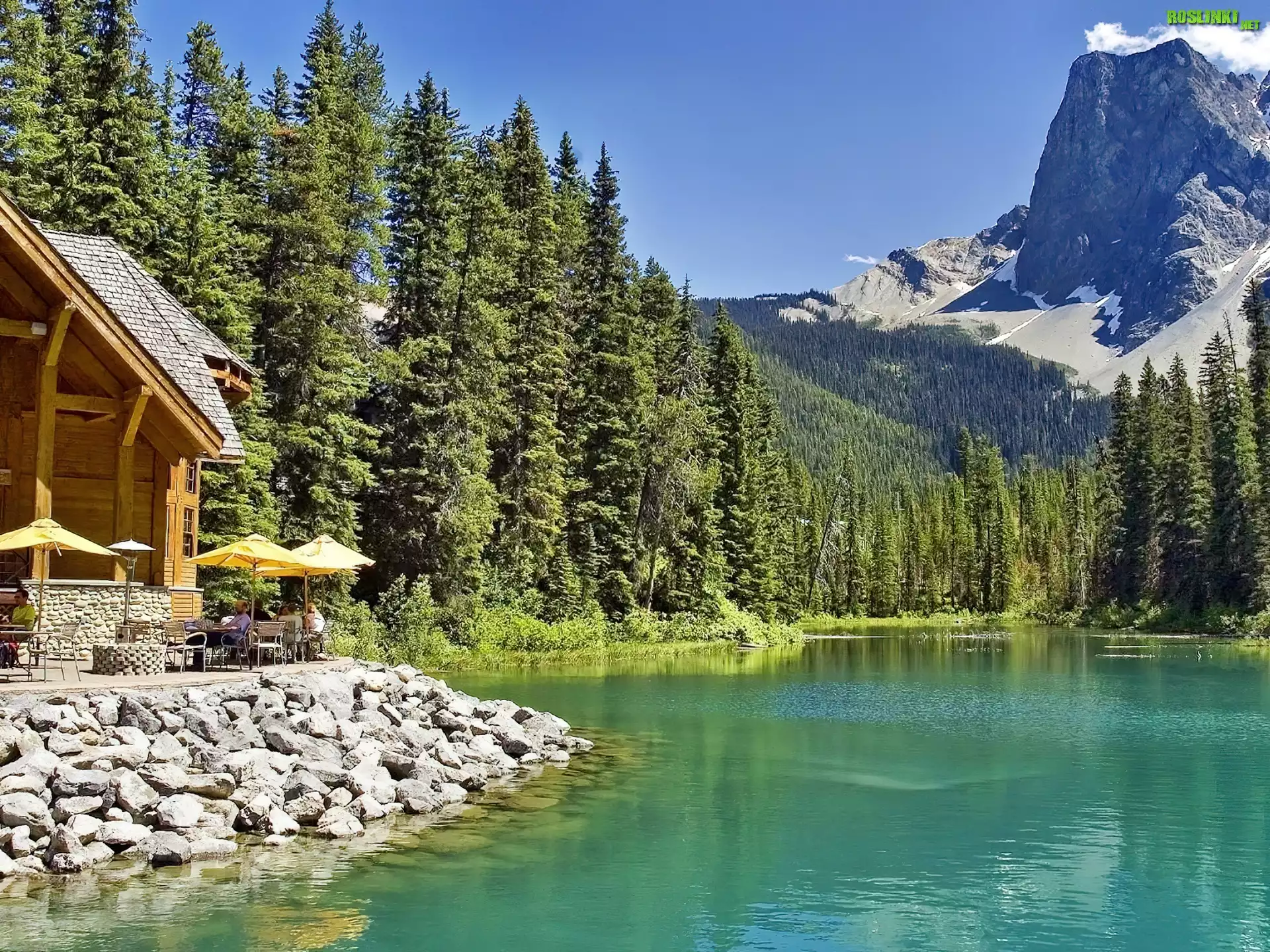 Rośliny: Góry, Restauracja, Nad, Jeziorem