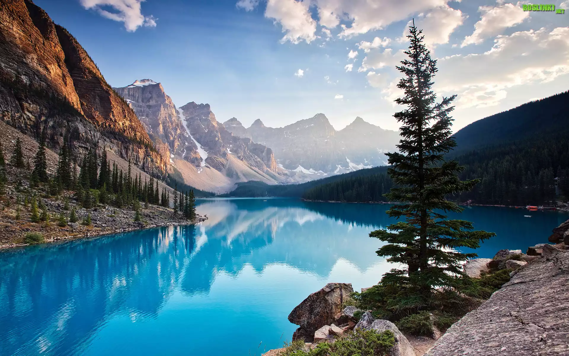 Rośliny: Kanada, Prowincja Alberta, Park Narodowy Banff, Jezioro Moraine, Drzewa, Góry