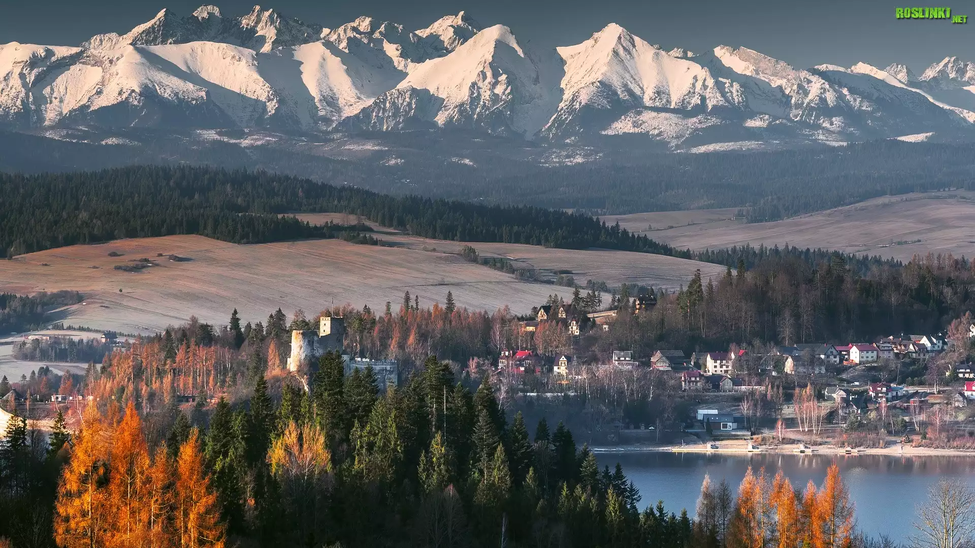 Rośliny: Góry, Tatry, Rzeka, Drzewa, Domy, Zamek Niedzica, Niedzica, Polska