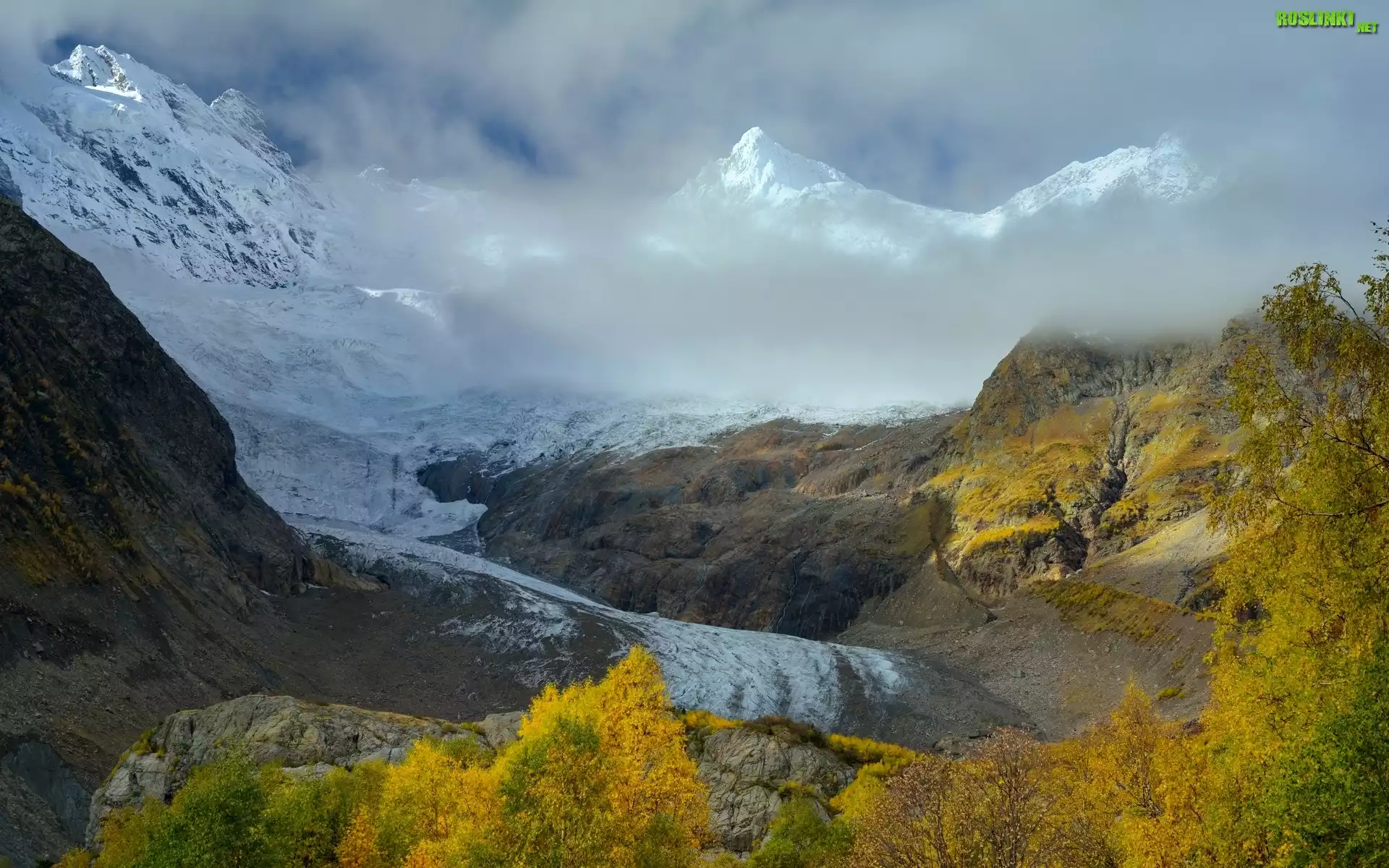 Rośliny: Góry, Wierzchołki, Chmury, Śnieg, Drzewa