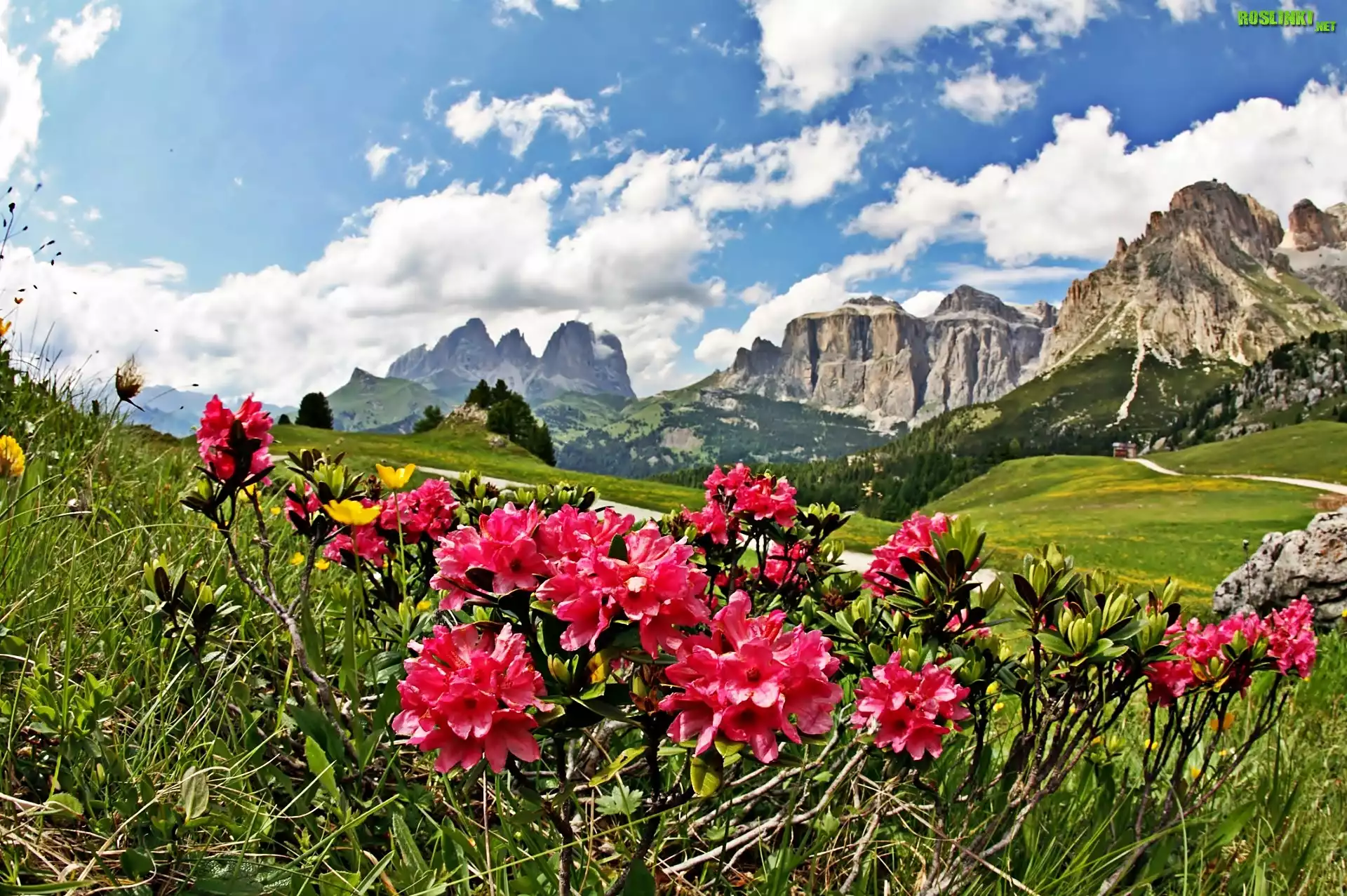Rośliny: Góry, Łąka, Różanecznik, Obłoki, Wiosna