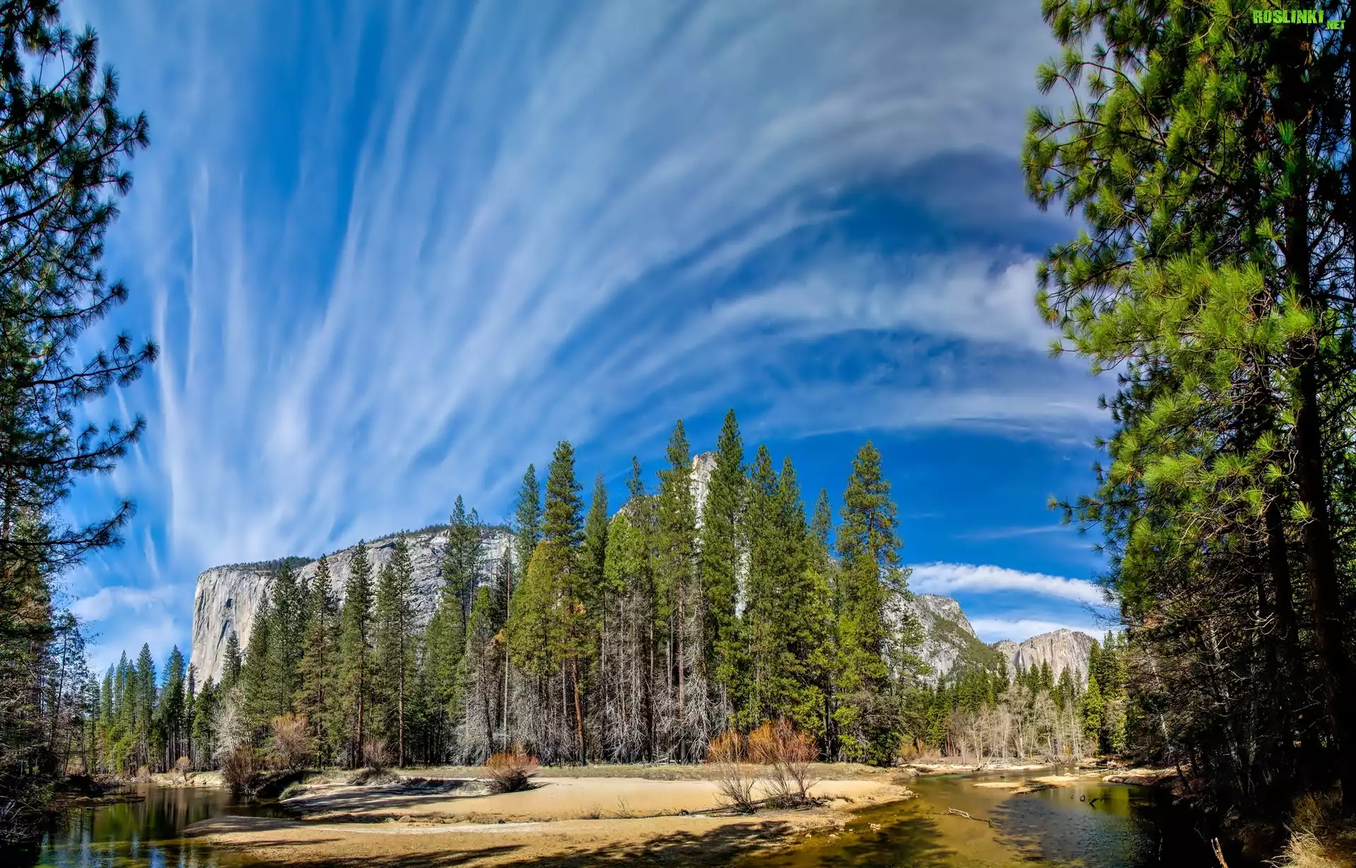 Rośliny: Stany Zjednoczone, Stan Kalifornia, Park Narodowy Yosemite, Drzewa, Niebo, Góry