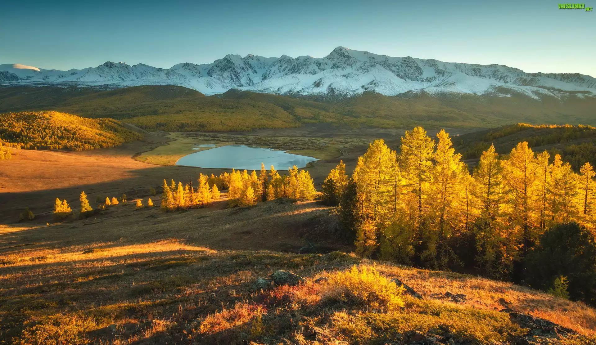 Rośliny: Jesień, Góry Północnoczujskie, Drzewa, Jezioro Dzhangyskol, Ałtaj, Rosja