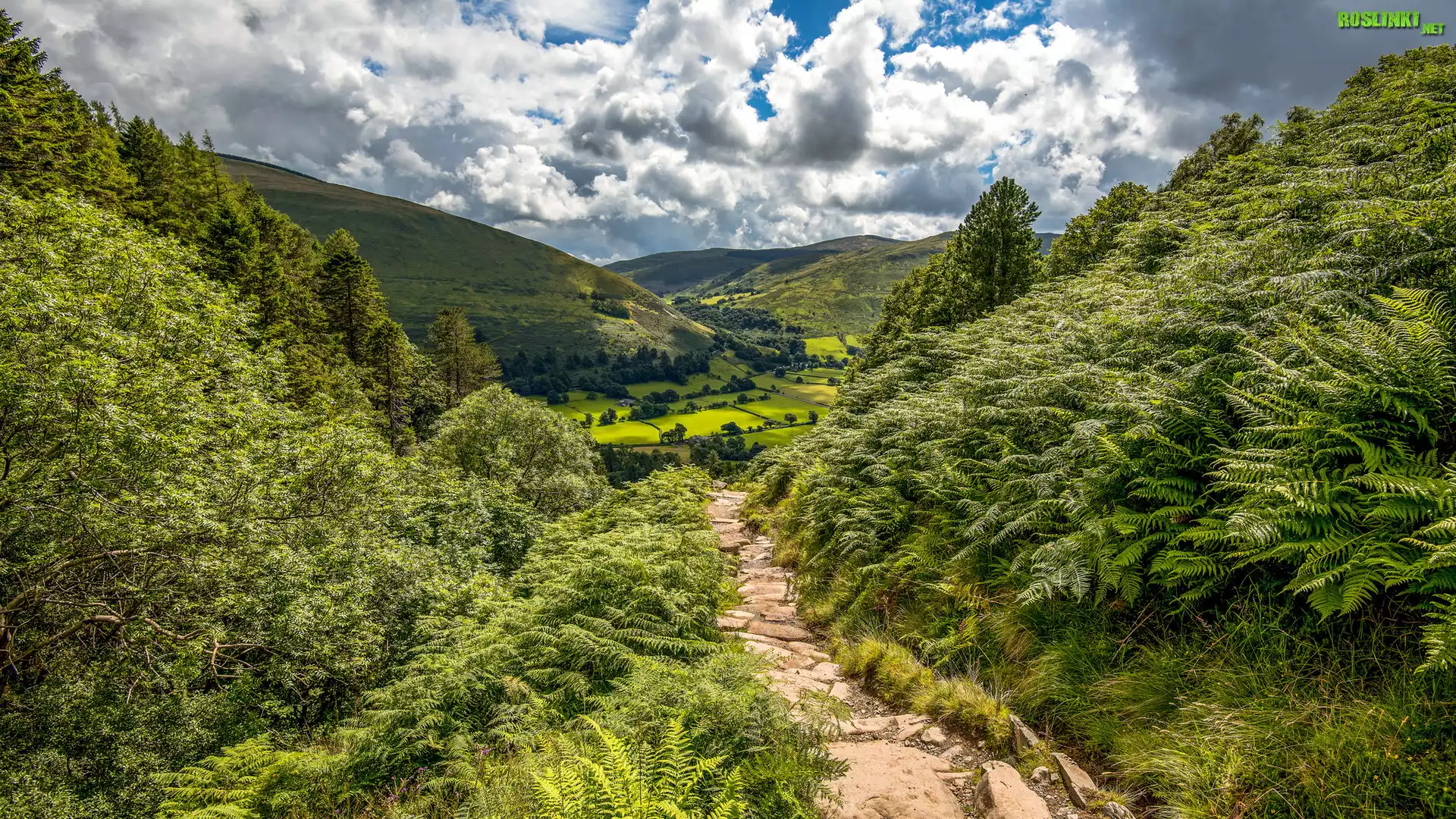 Rośliny: Góry, Chmury, Droga, Roślinność, Paprocie