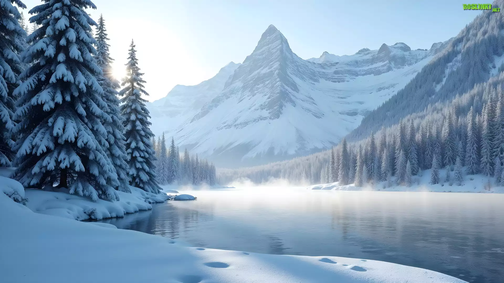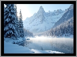 Rośliny: Zima, Góry, Rzeka, Mgła, Drzewa