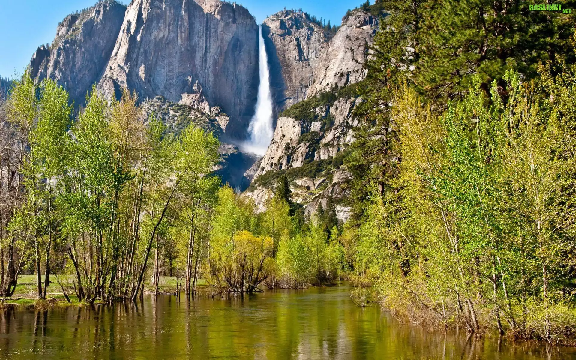 Rośliny: Góry, Wodospad, Rzeka, Drzewa