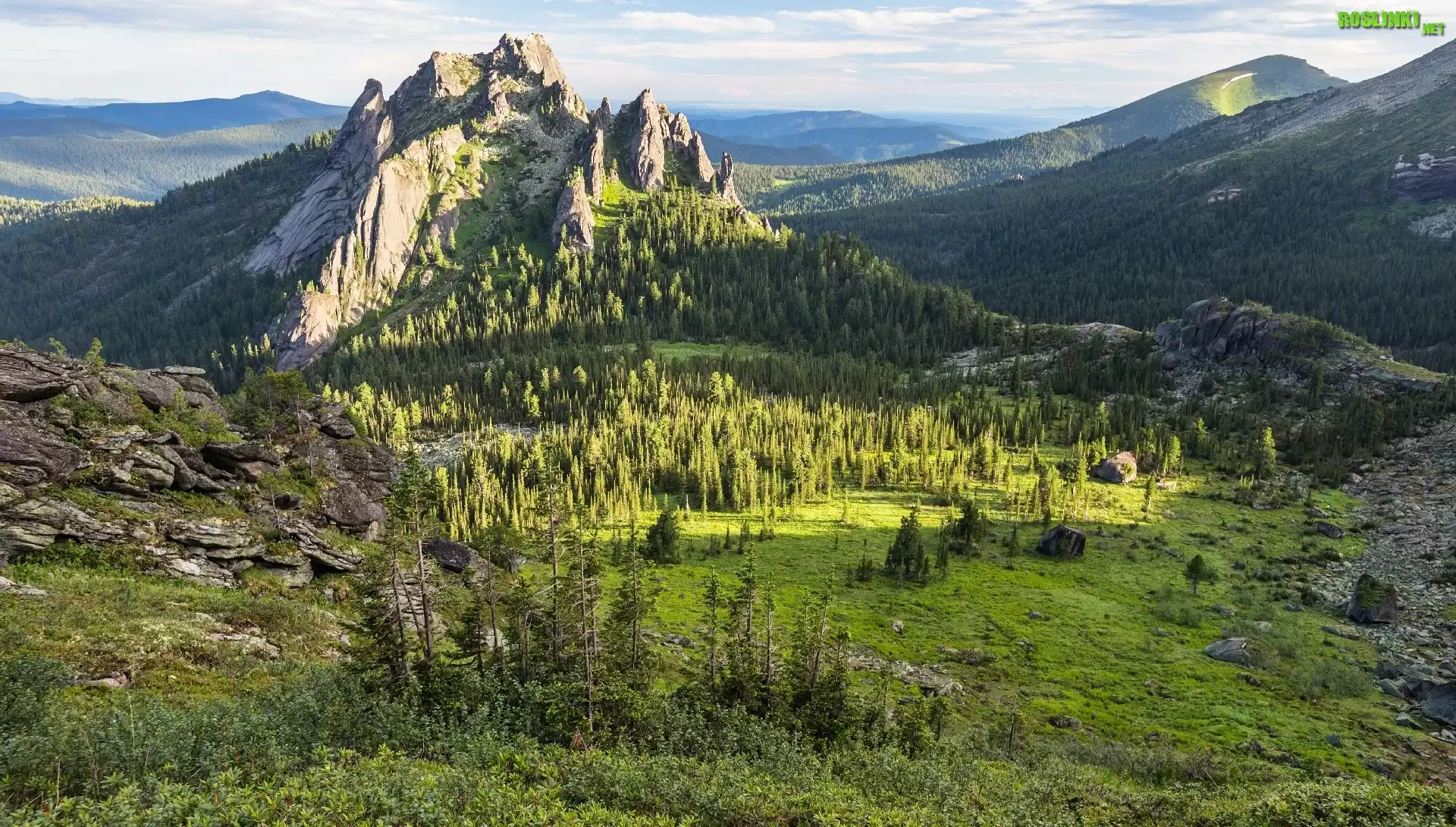 Rośliny: Góry, Drzewa, Trawa, Skały, Łąka