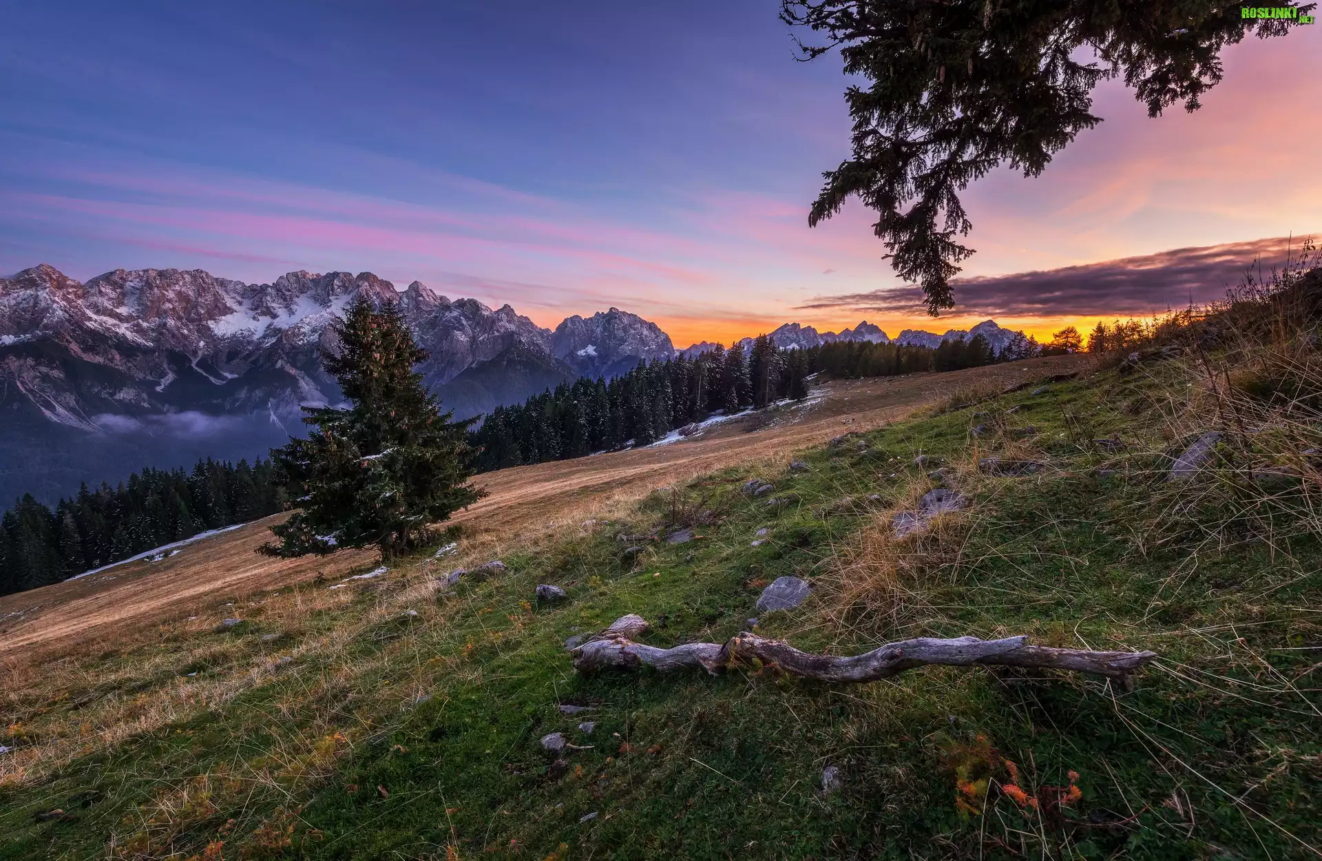 Rośliny: Góry, Las, Wschód słońca, Drzewa