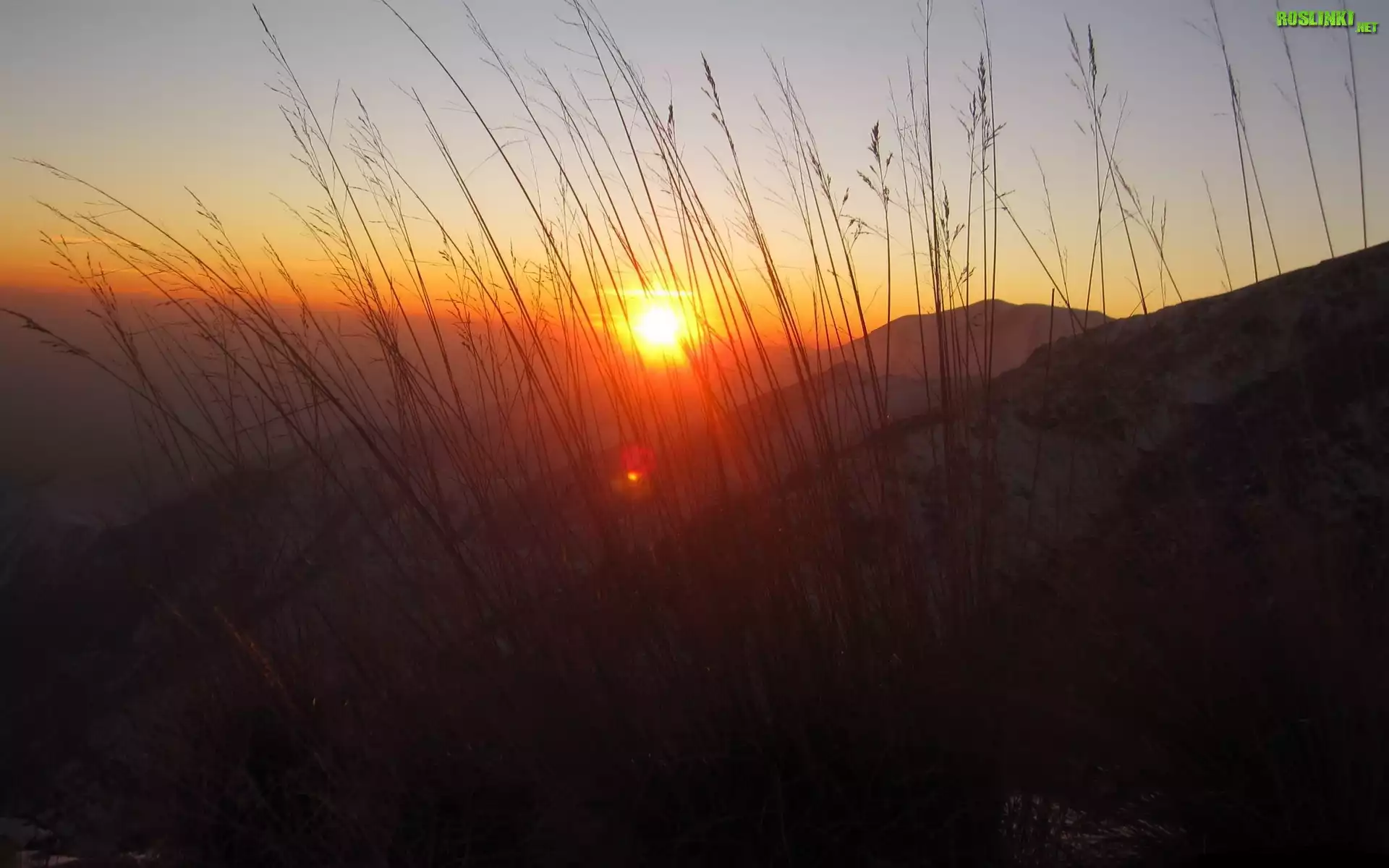 Rośliny: Góry, Zachód Słońca, Trawa