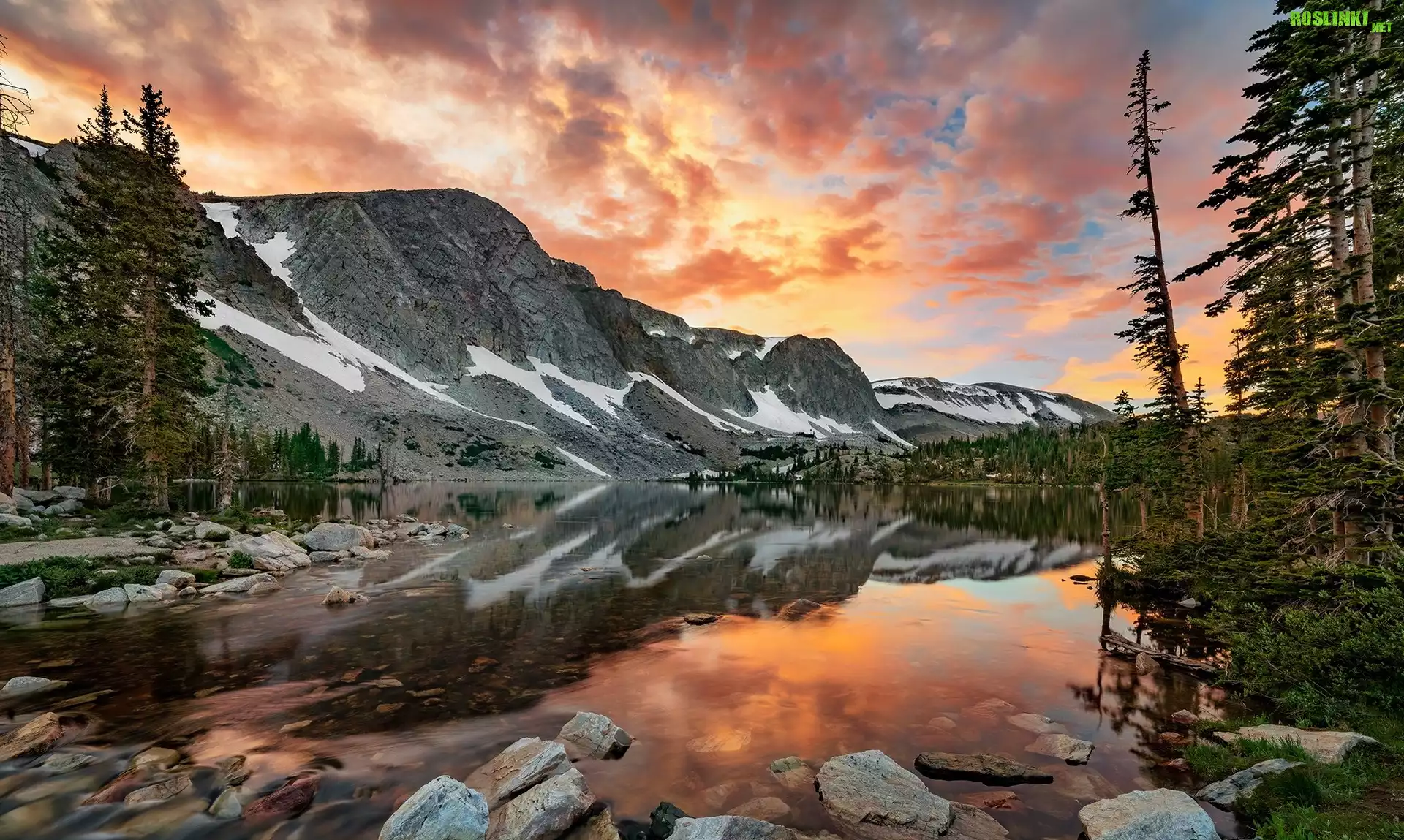 Rośliny: Góry, Jezioro, Lake Marie, Kamienie, Drzewa, Chmury, Wyoming, Stany Zjednoczone