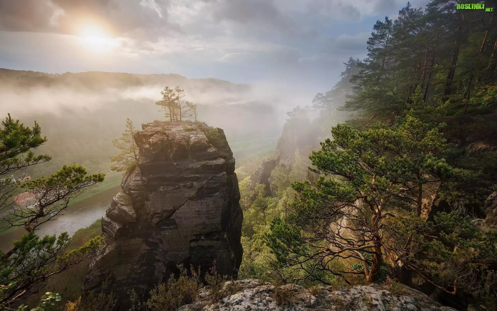 Rośliny: Góry, Połabskie, Rzeka, Łaba, Skały, Mgła, Drzewa, Labska Stran, Czechy