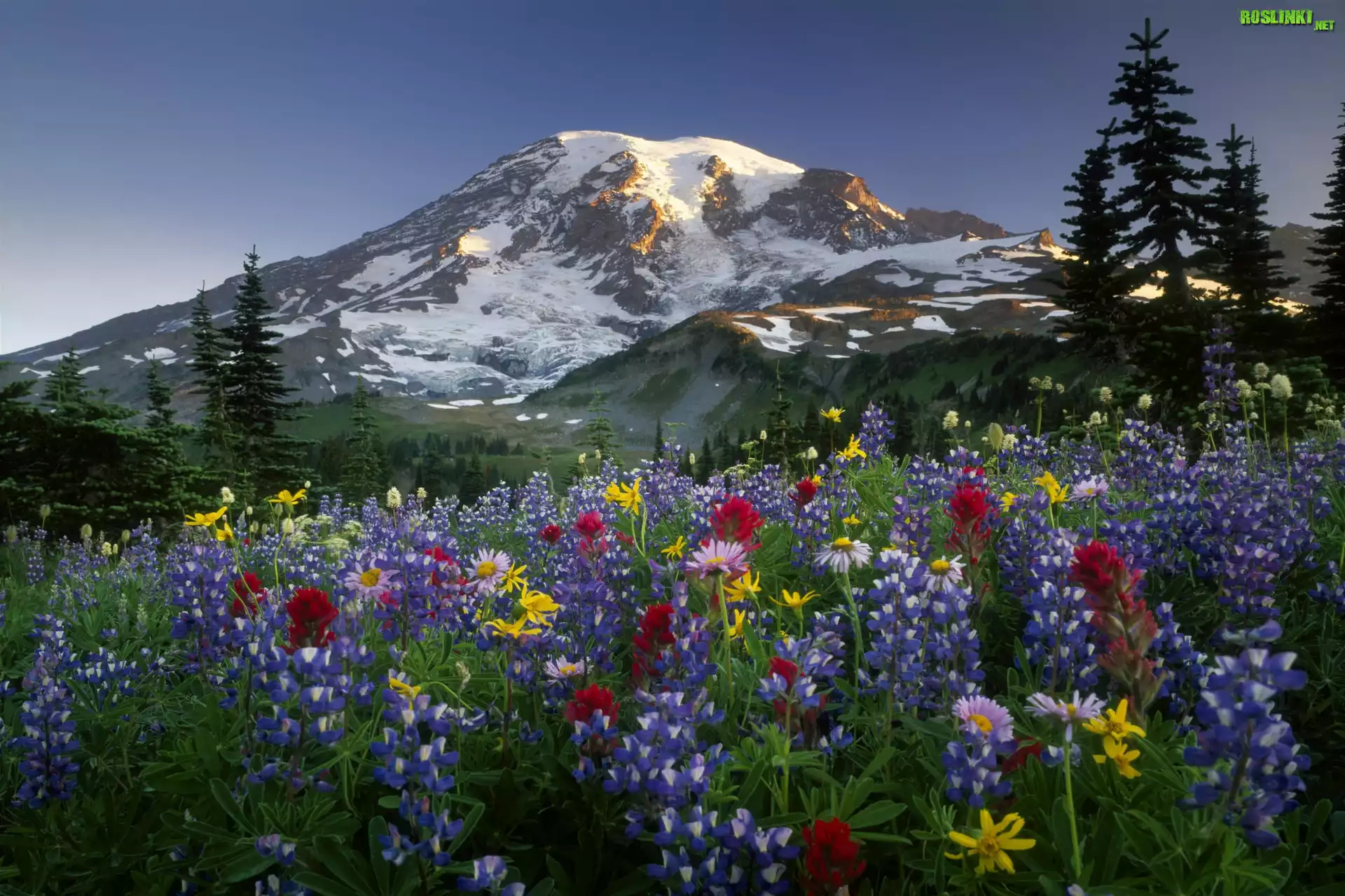 Rośliny: Góry, Kwiatki, Łubin, Drzewa
