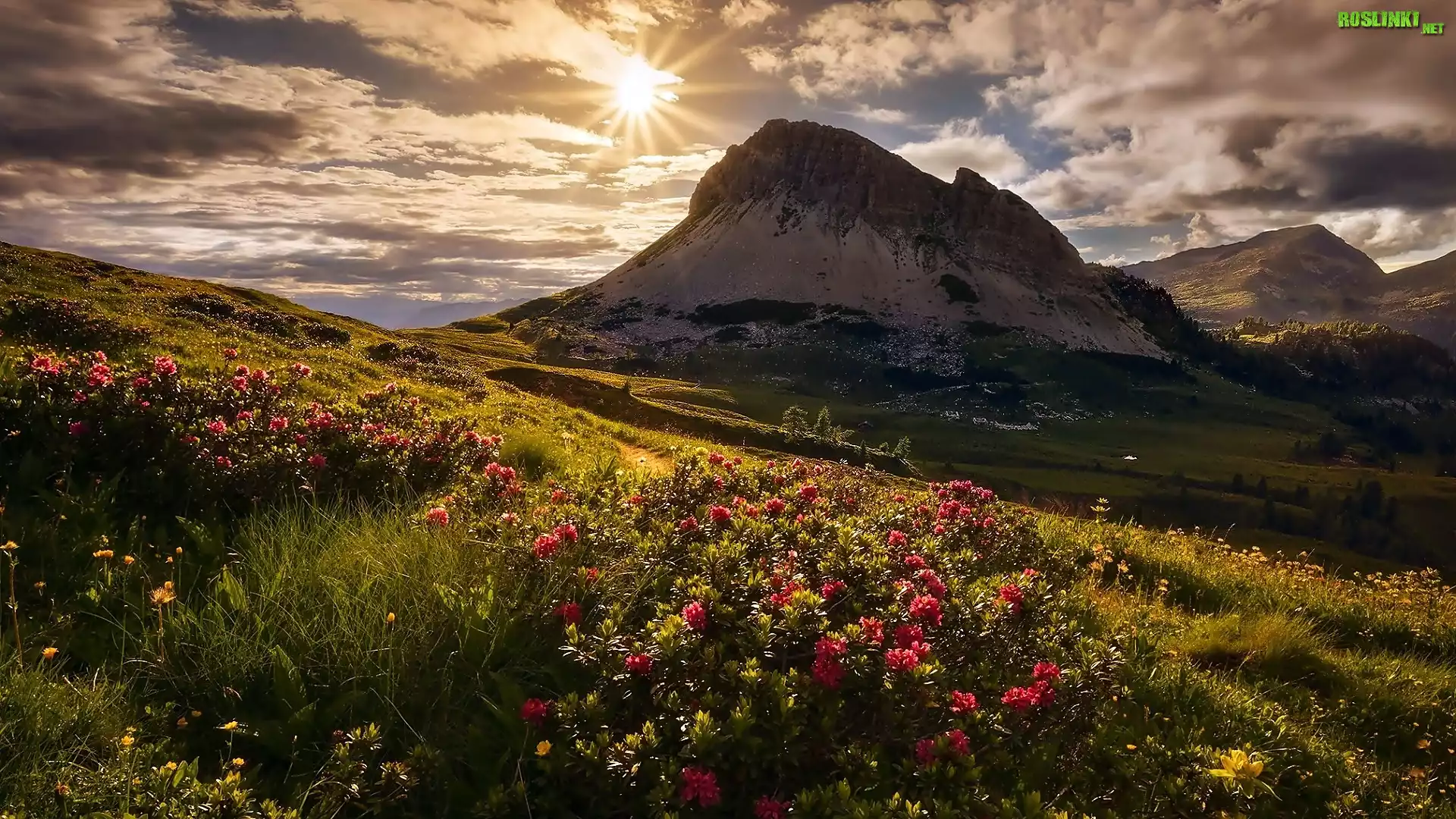 Rośliny: Wiosna, Góry, Chmury, Promienie, Słońca, Łąka, Rododendrony
