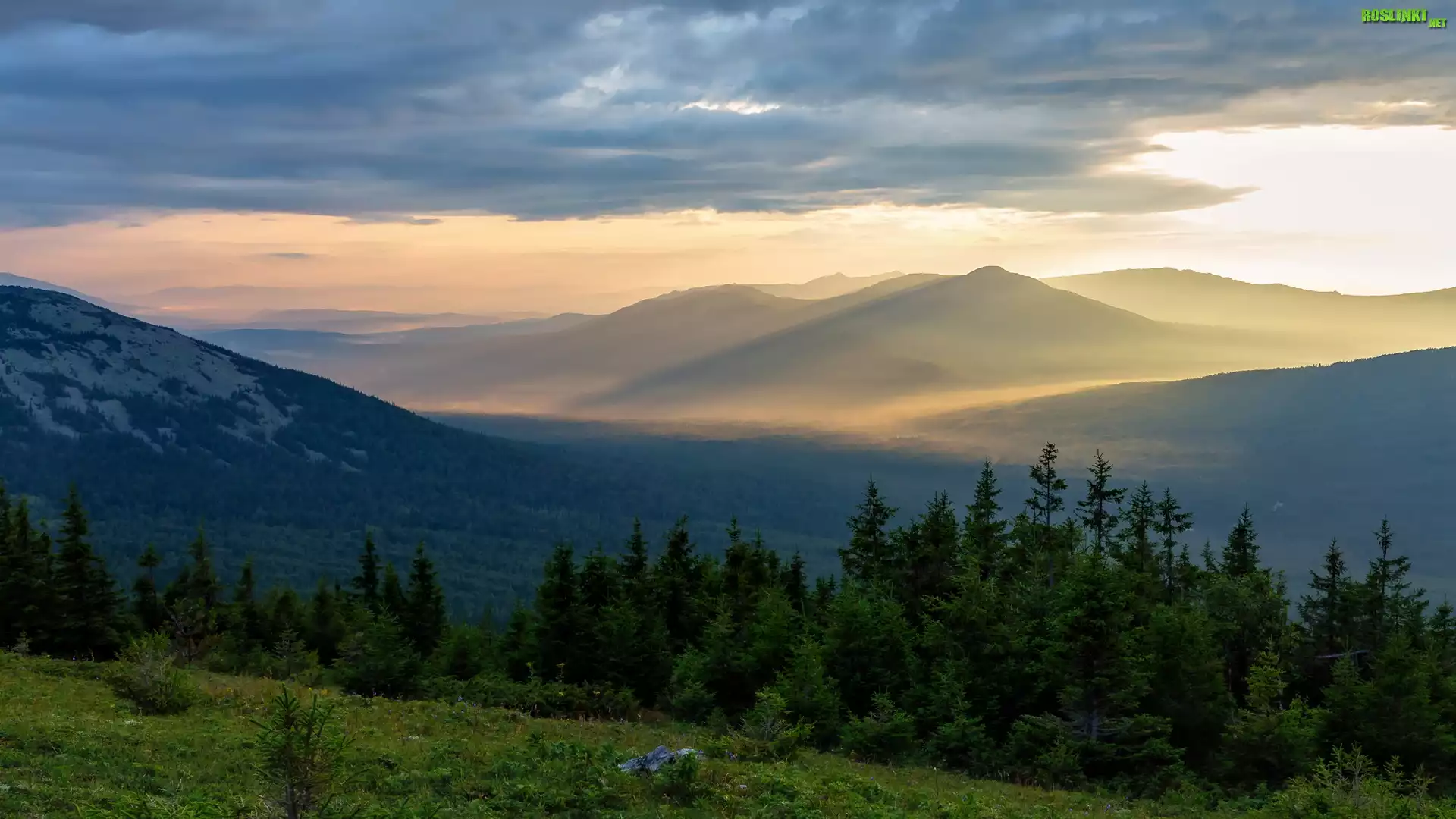 Rośliny: Góry, Drzewa, Wschód słońca