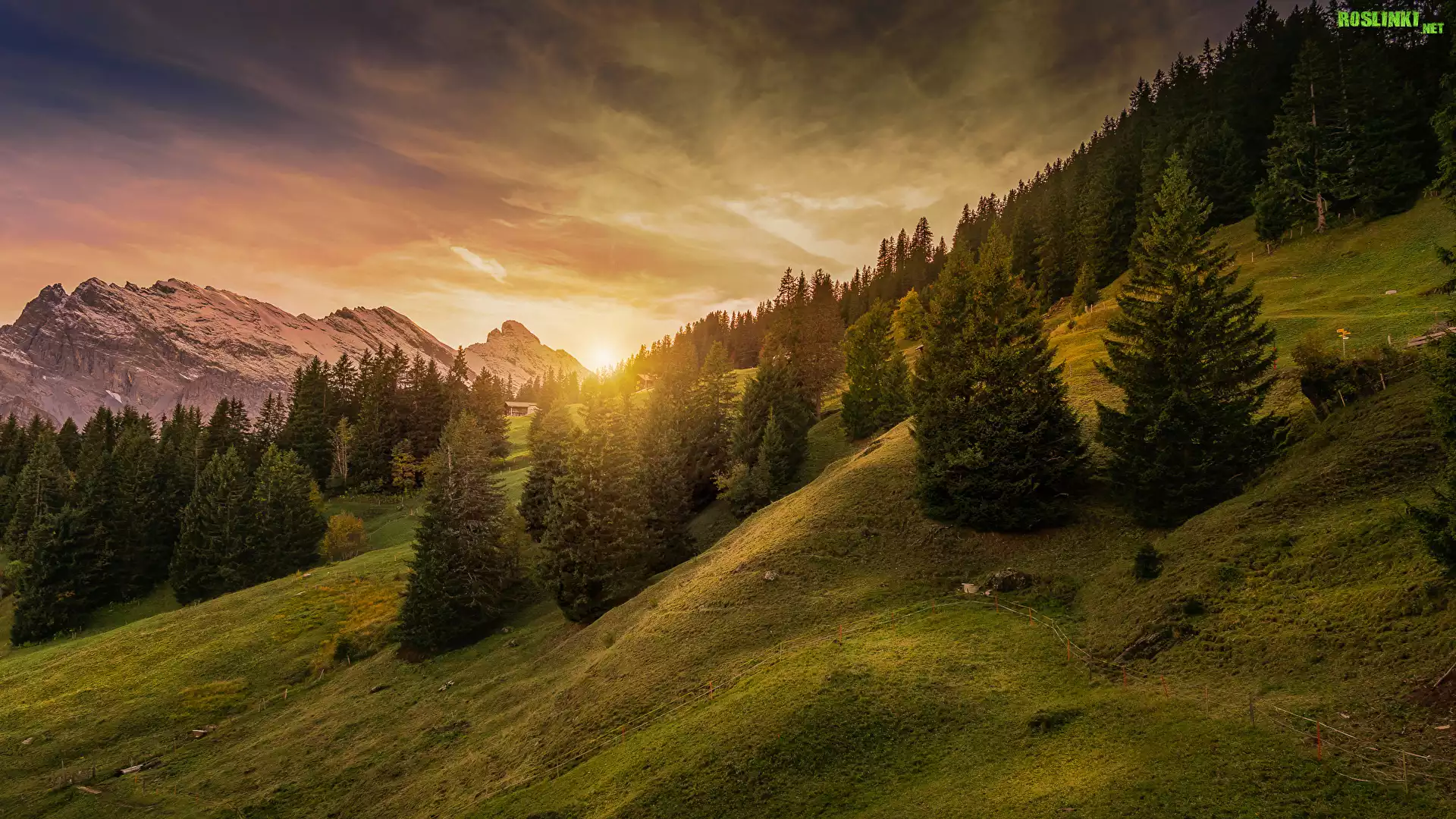 Rośliny: Góry, Drzewa, Las, Świerki, Wschód słońca