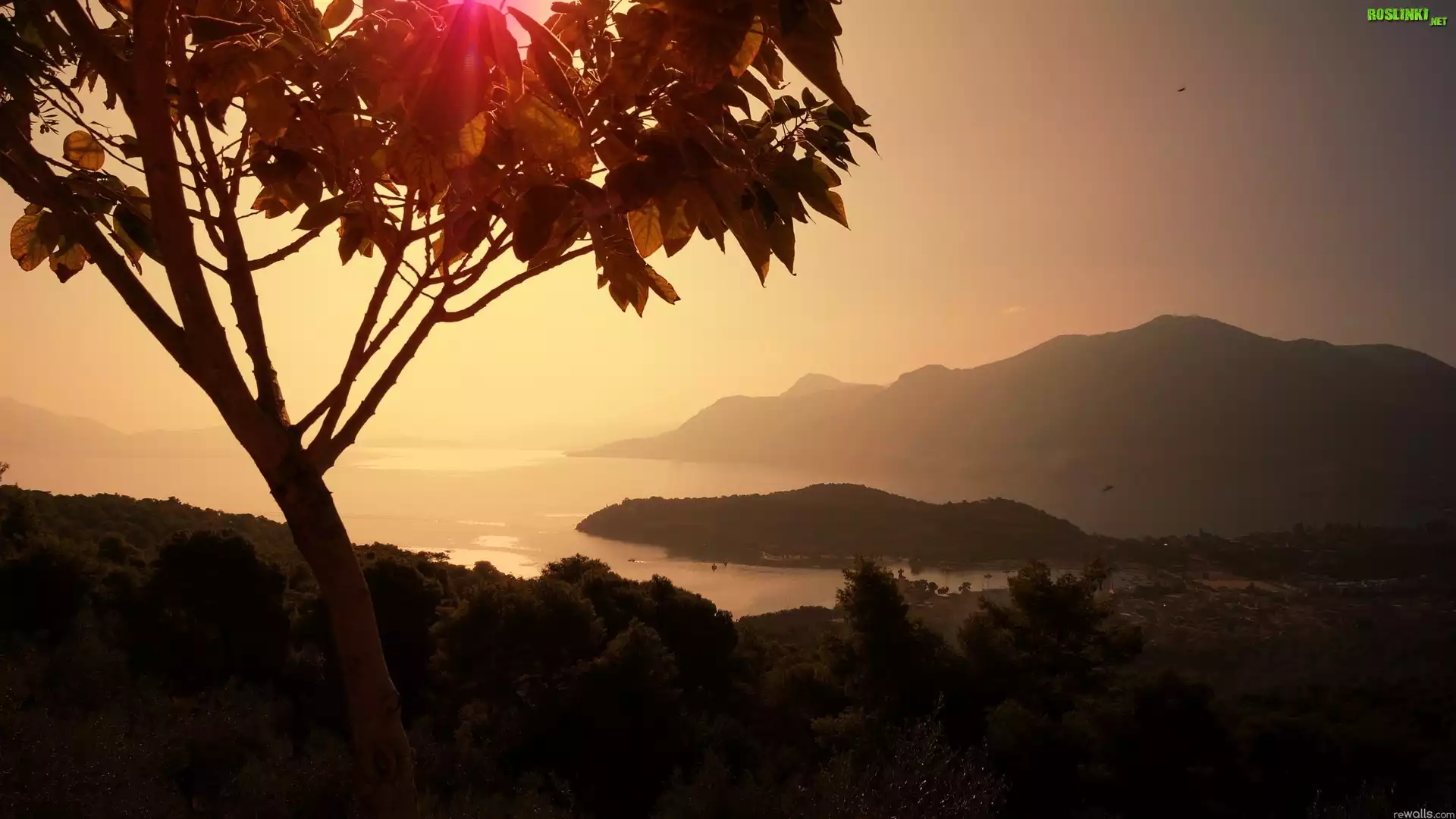 Rośliny: Góry, Jezioro, Zachód, Słońca
