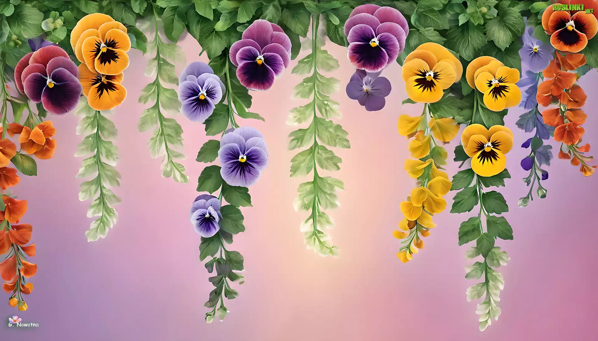 Rośliny: Bratki, Kwiaty, Liście, Grafika