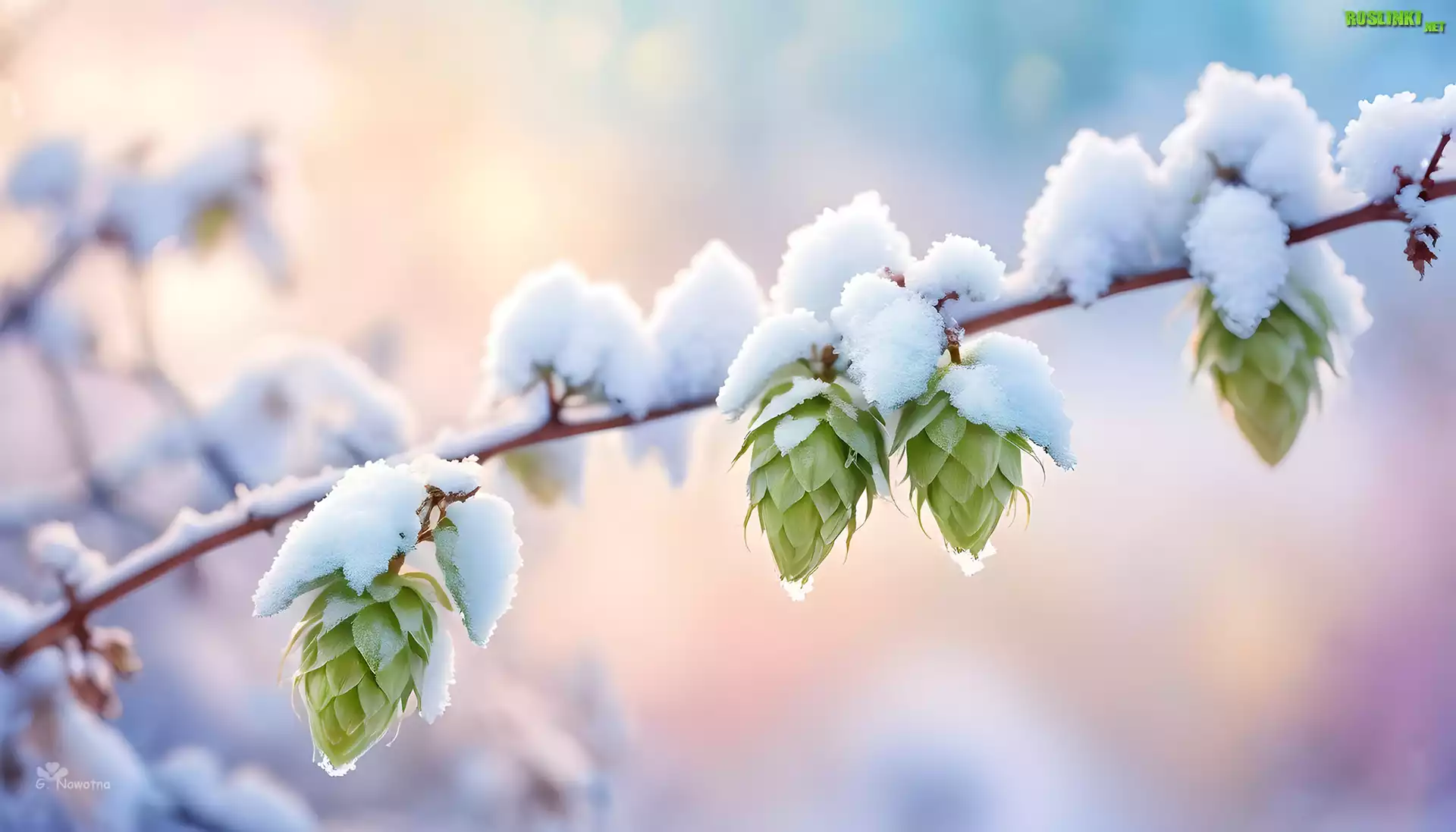 Rośliny: Chmiel, Szyszki, Śnieg, Grafika