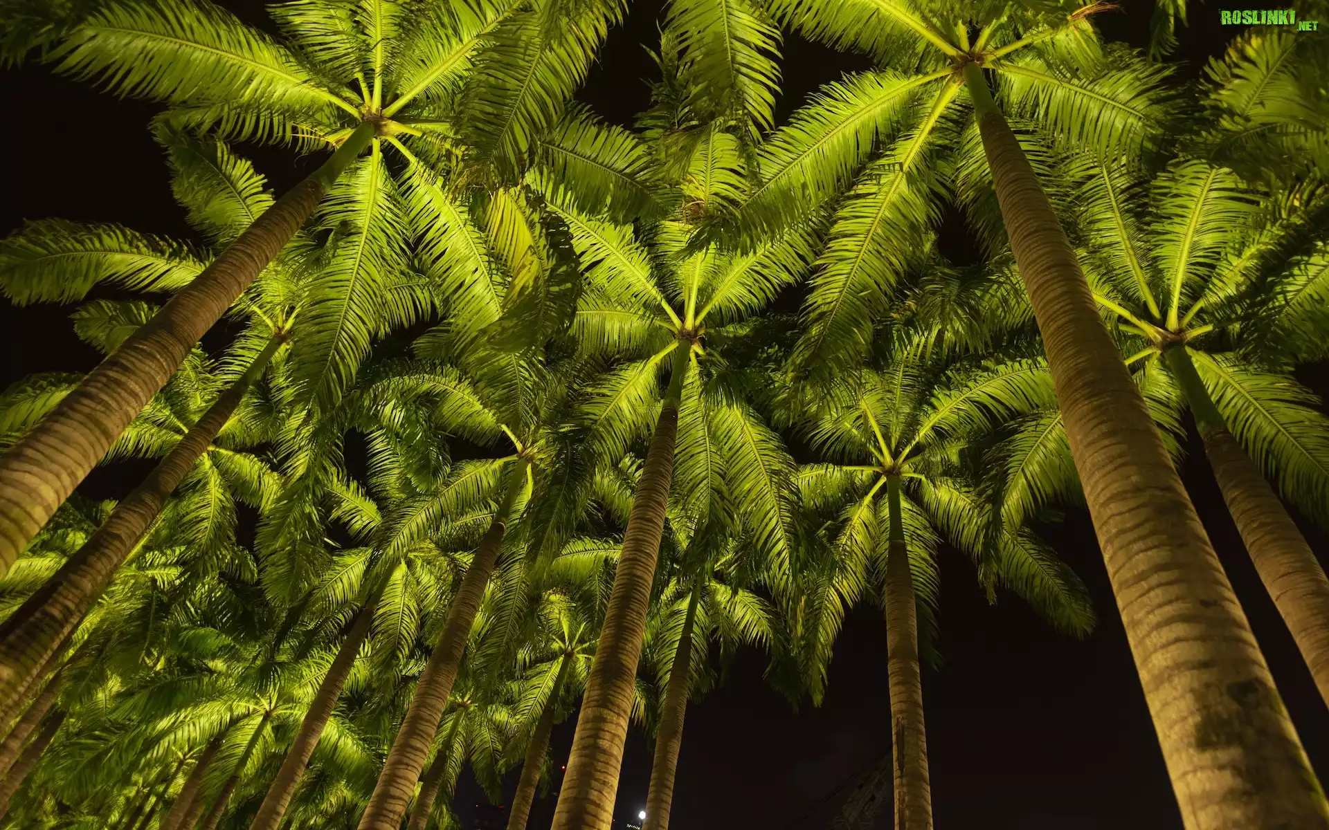 Rośliny: Drzewa, Palmy, Noc, Grafika