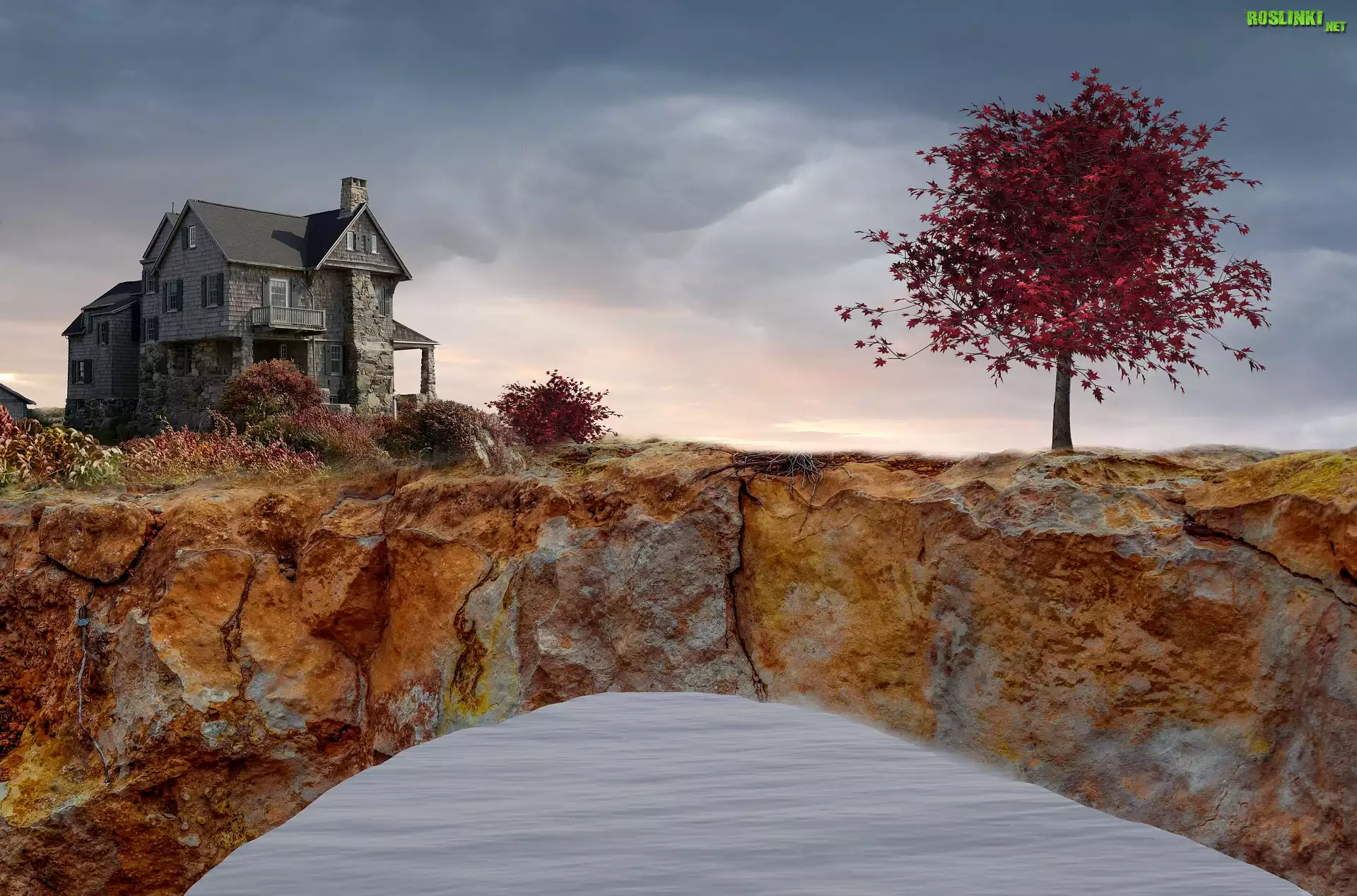 Rośliny: Grafika, Skała, Dom, Drzewo, Krzewy