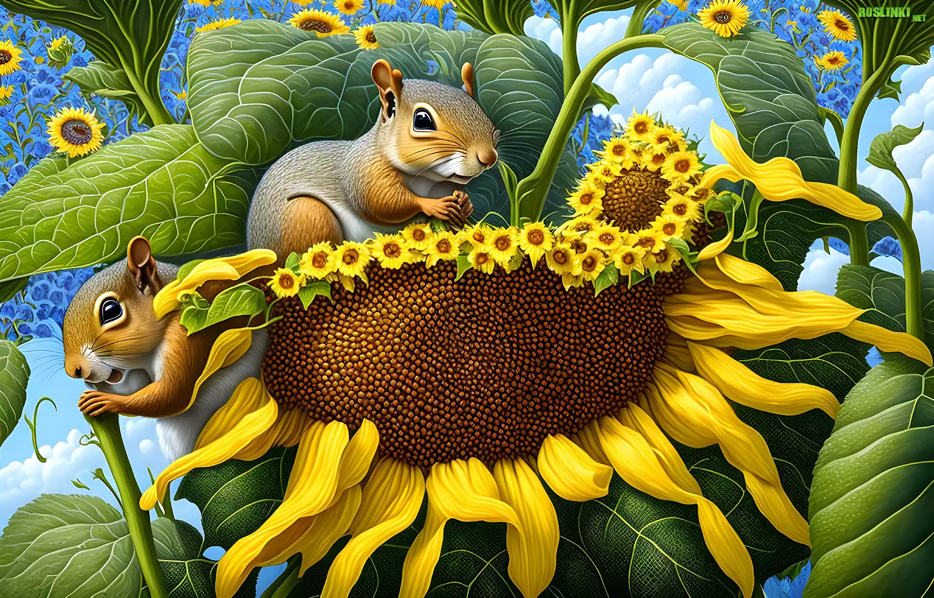 Dwie, Wiewiórki, Słonecznik, Grafika
