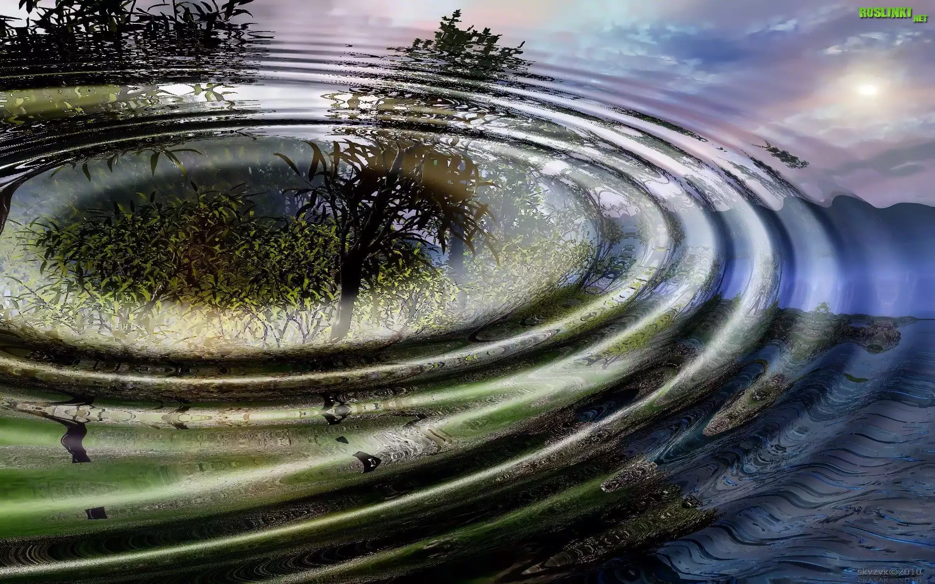 Rośliny: Grafika, Woda, Fale, Drzewa
