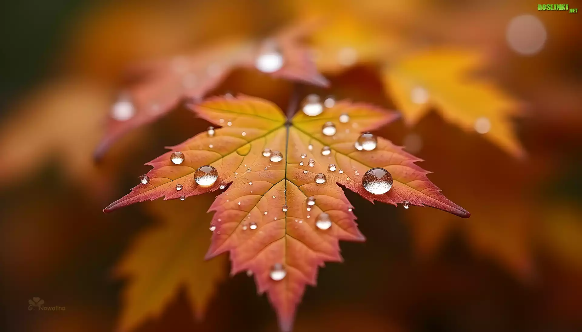 Rośliny: Jesień, Liść, Krople, Grafika