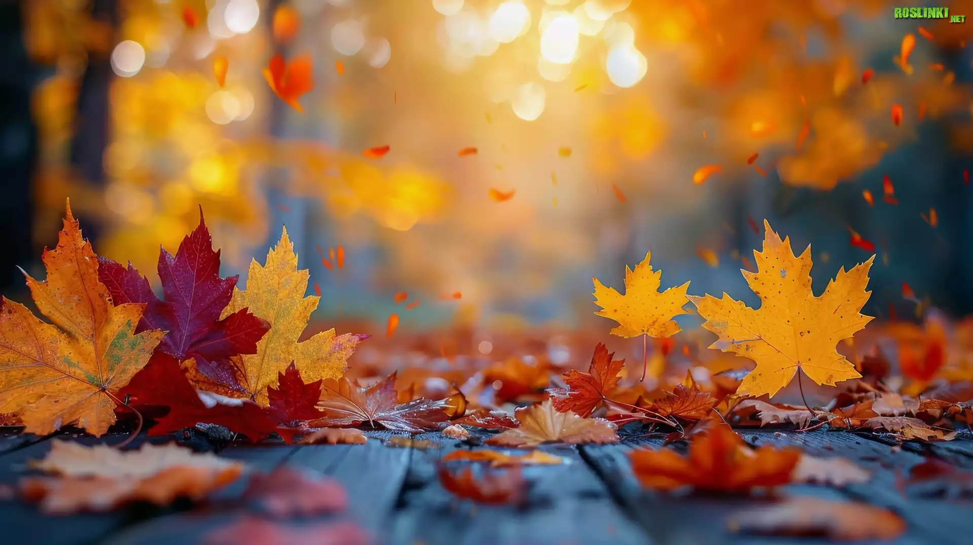 Jesienne, Liście, Deski, Grafika