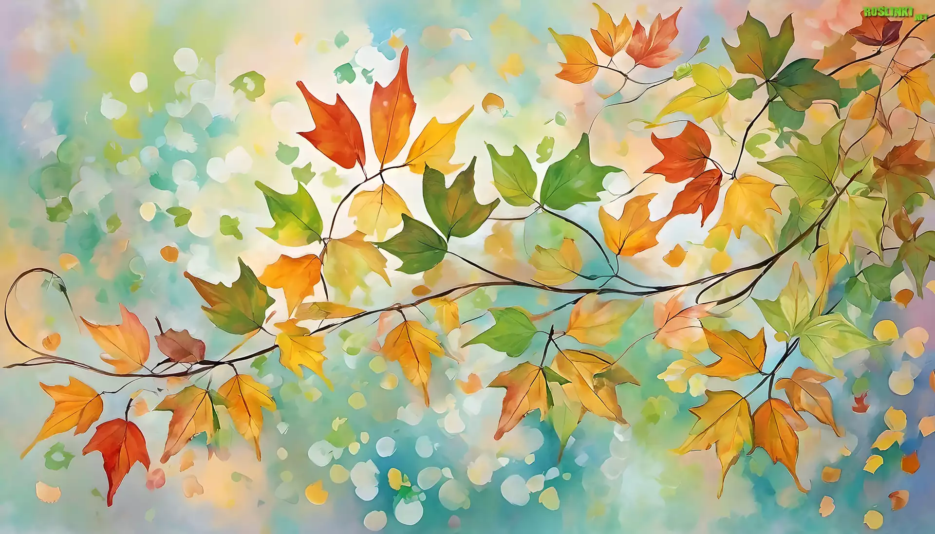 Rośliny: Kolorowe, Liście, Gałązka, Grafika