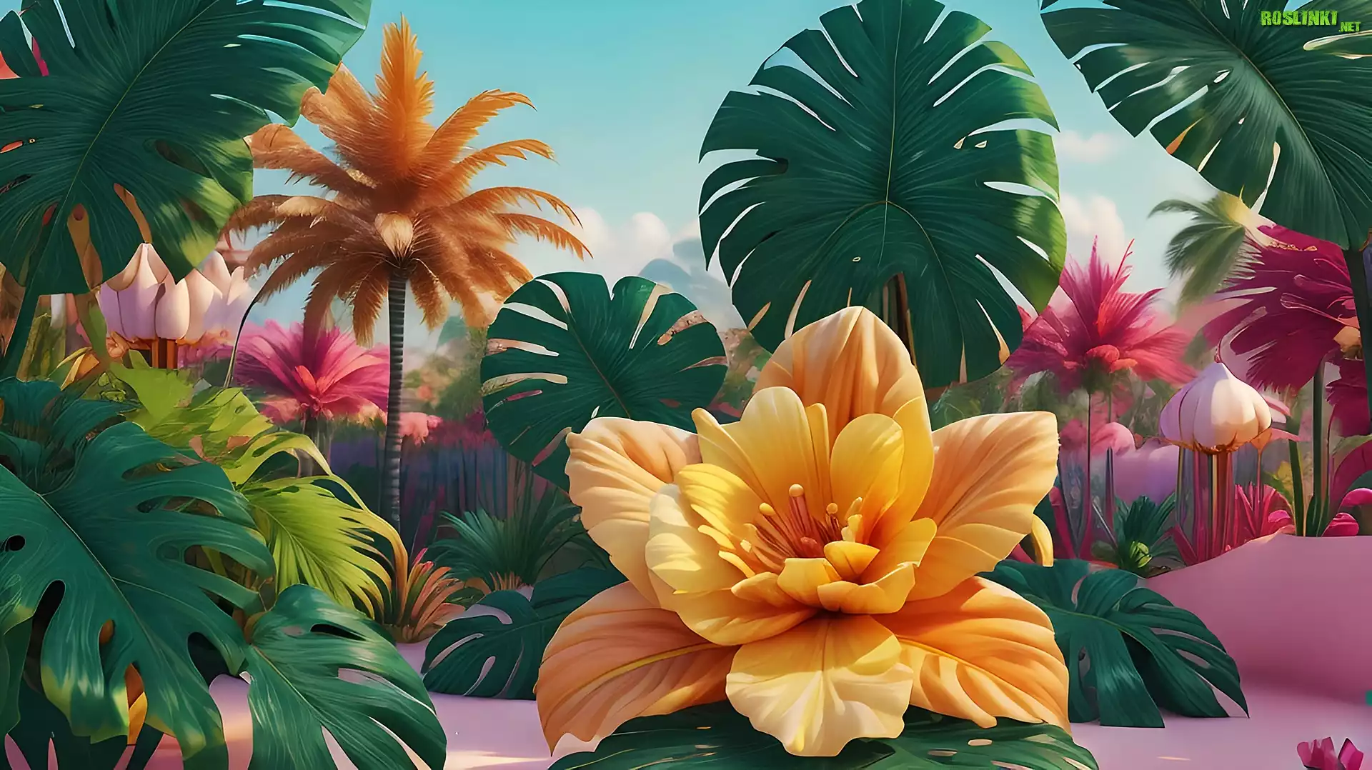 Rośliny: Kwiat, Żółty, Liście, Grafika