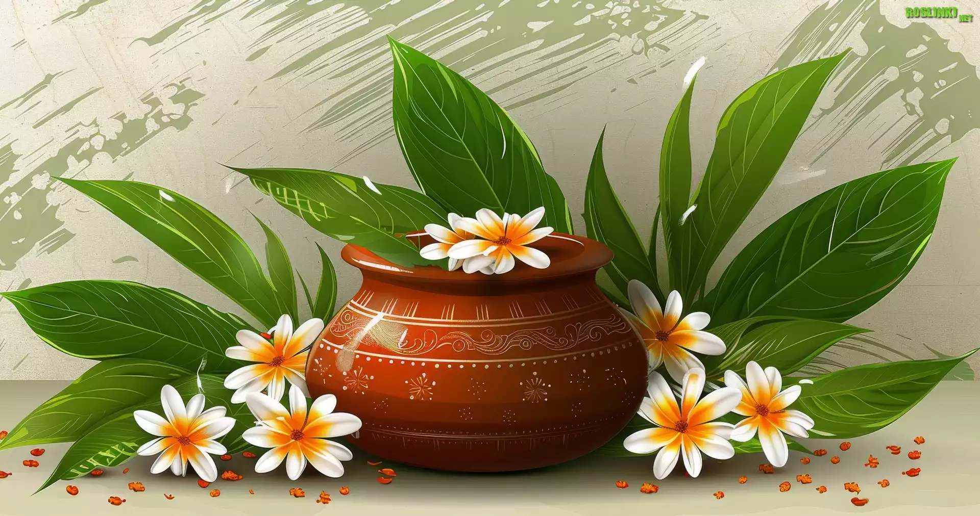 Rośliny: Żółto-białe, Kwiaty, Zielone, Liście, Brązowy, Wazon, Grafika