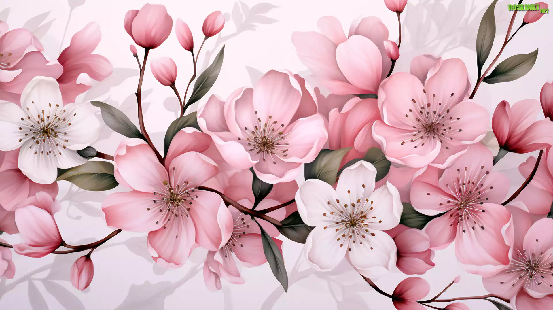 Rośliny: Białe, Różowe, Kwiaty, Gałęzie, Drzewo owocowe, Zbliżenie, Grafika