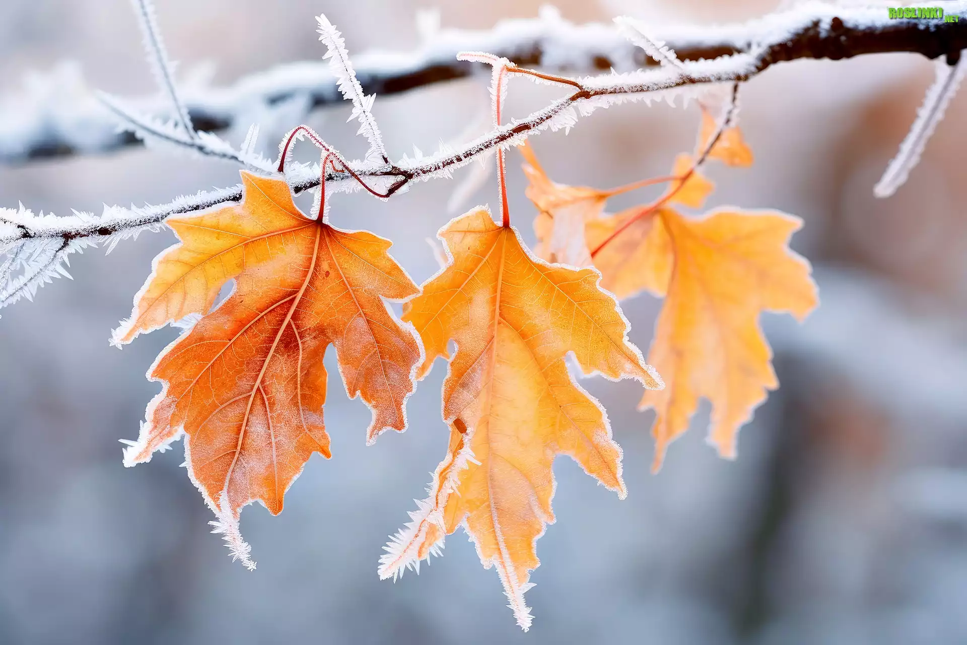 Rośliny: Liście, Szron, Gałązka, Grafika