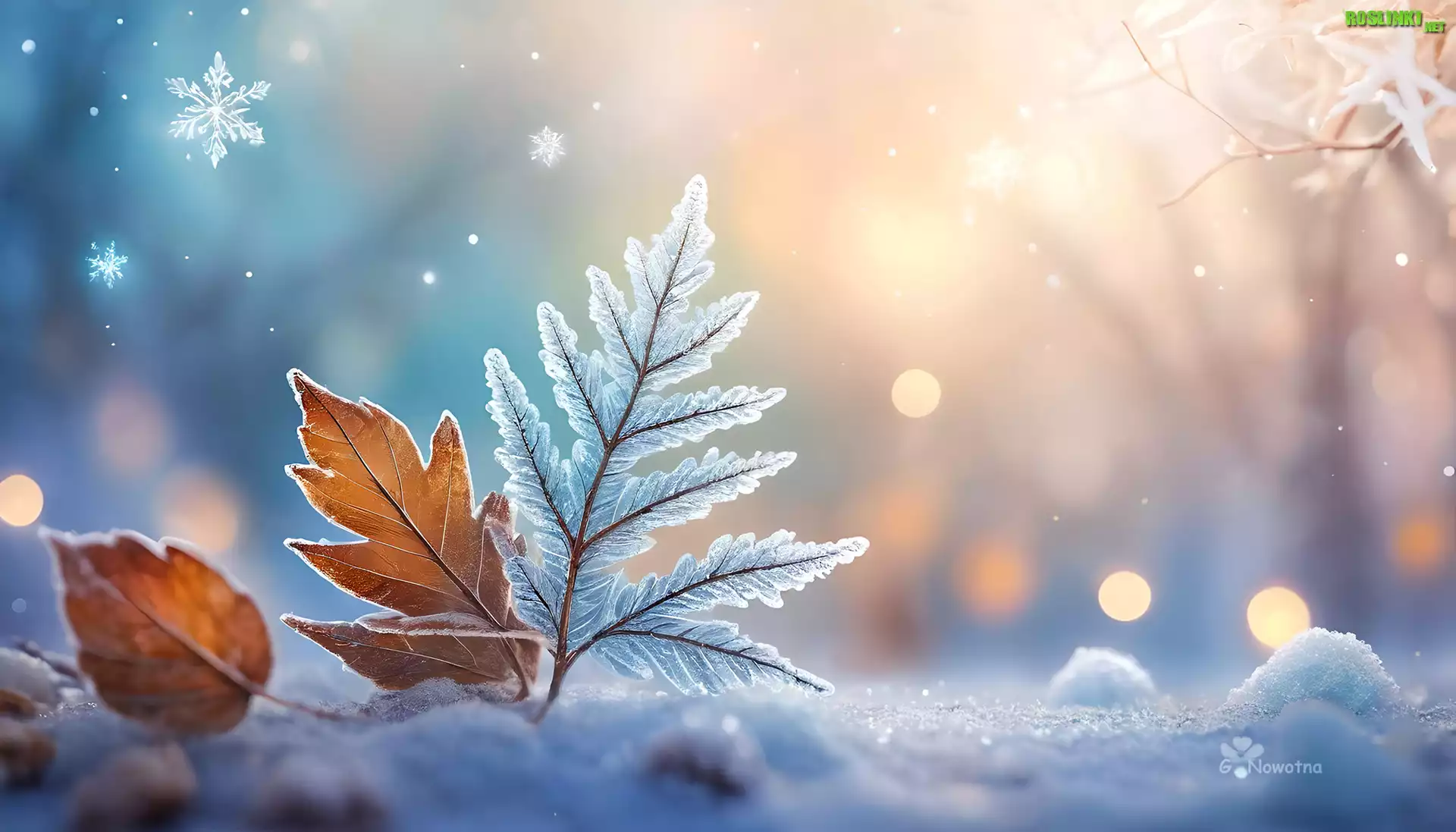 Rośliny: Liście, Śnieg, Śnieżynki, Grafika